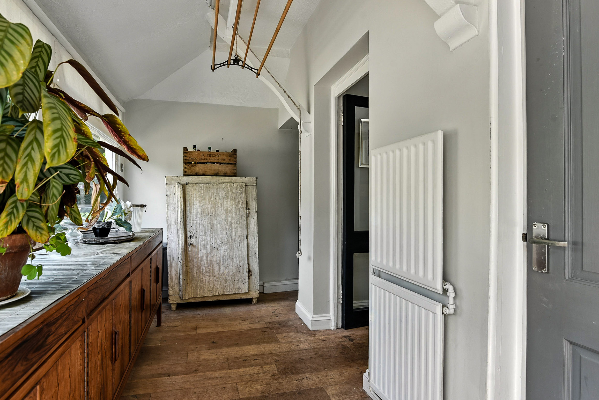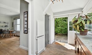 Light-filled sunroom/boot room leading off from the kitchen and out into the garden. The downstairs WC is also situated in this room.