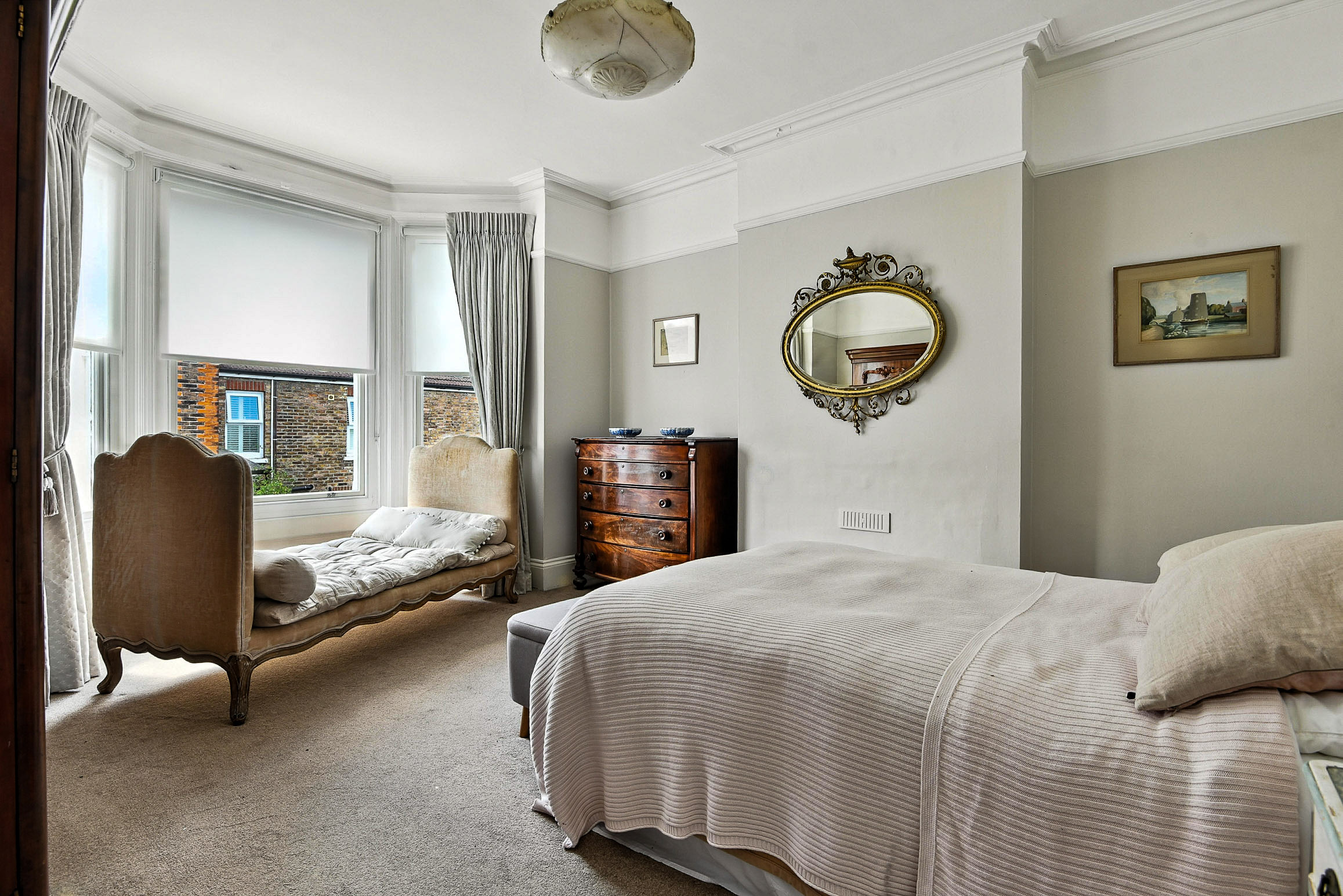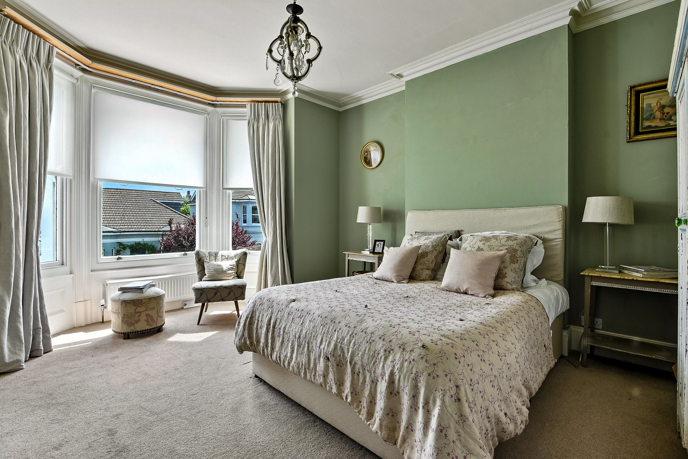 Beautiful bright second bedroom with large sash bay window.