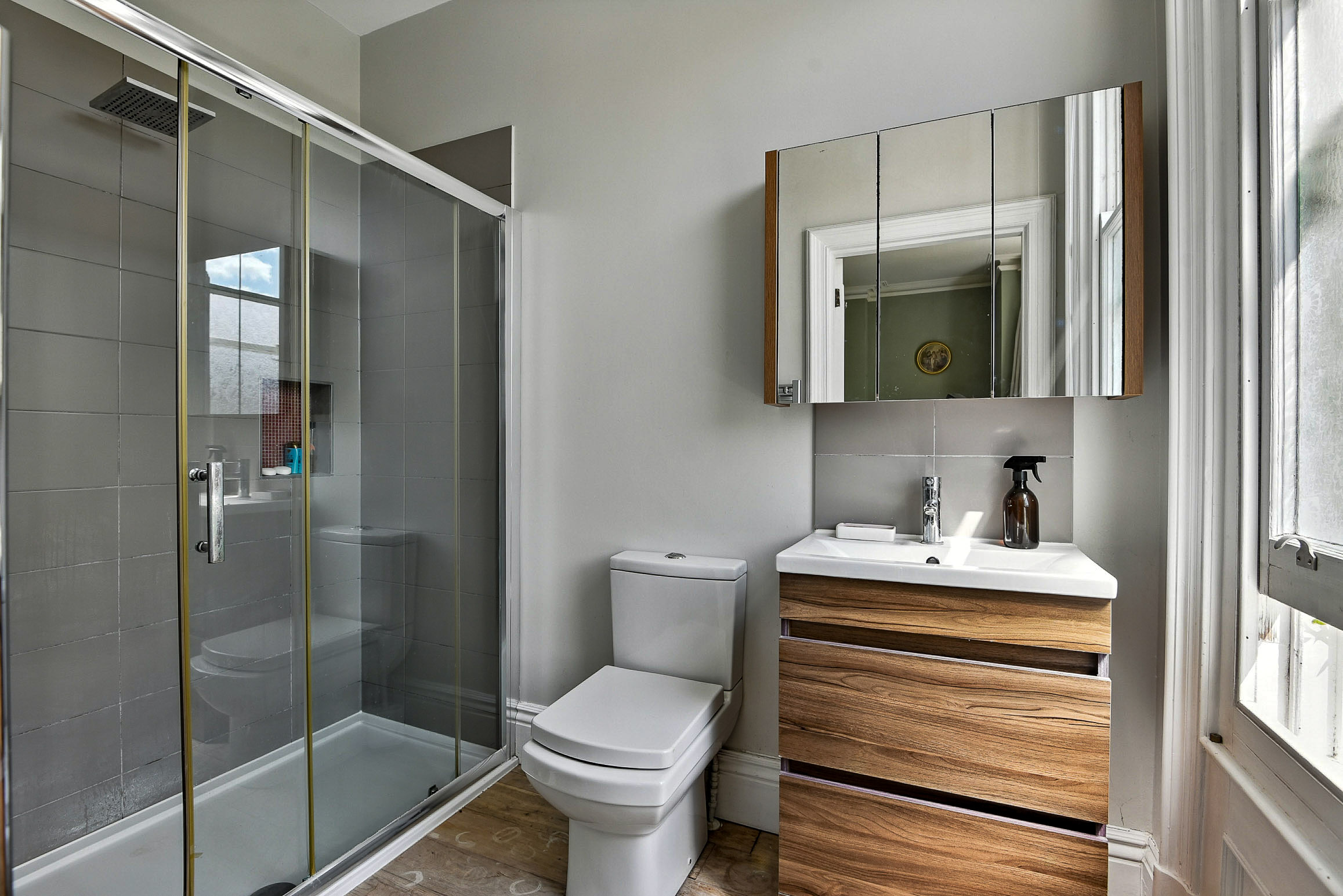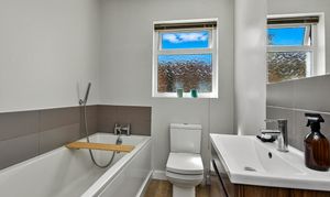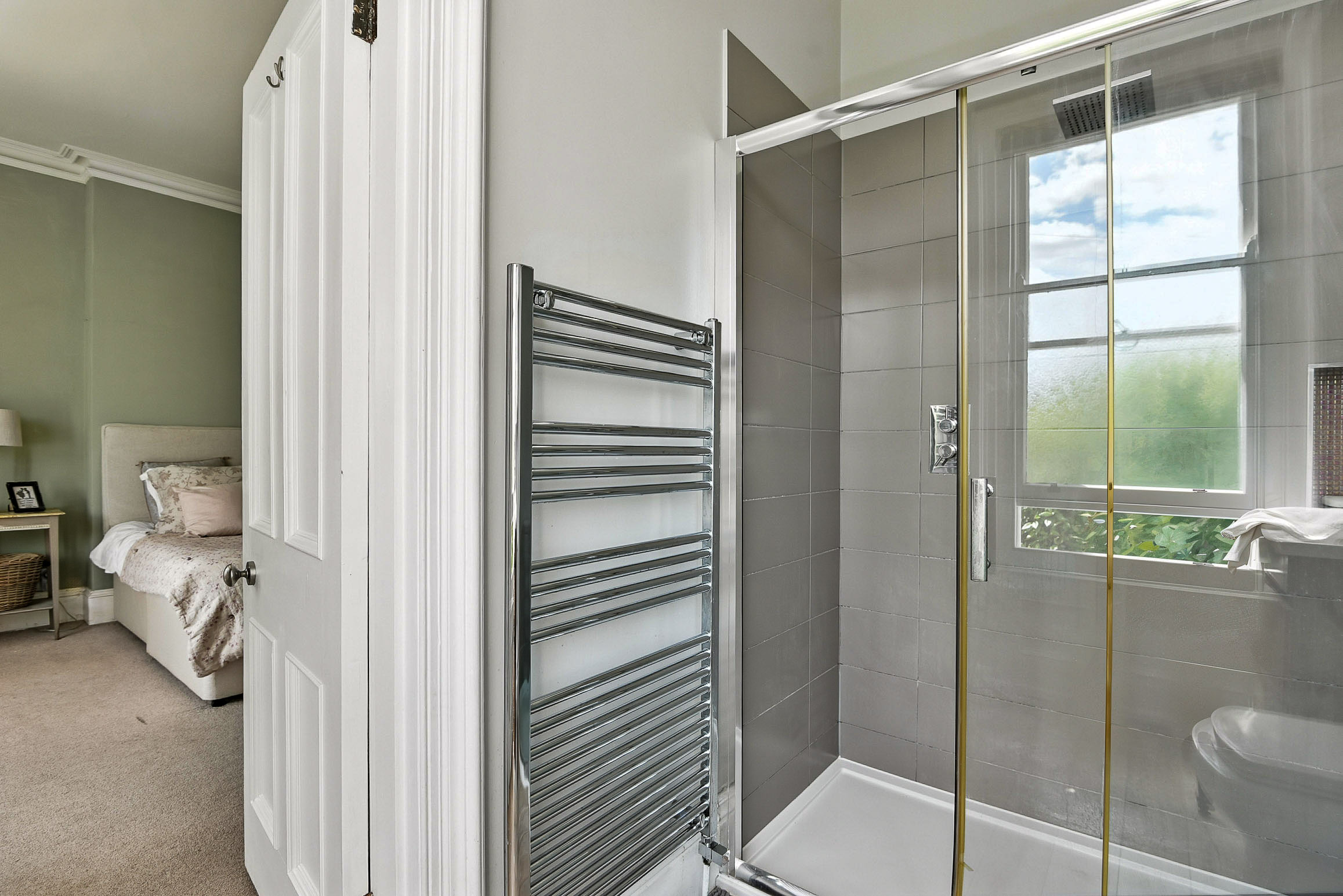 The second bedroom features beautiful original features and a bay window, as does the largest of the bedrooms to the front of the house. This main bedroom is beautifully decorated and benefits from a serene outlook of a quiet street lined with beautiful homes, and also has a bright en-suite with a large shower.