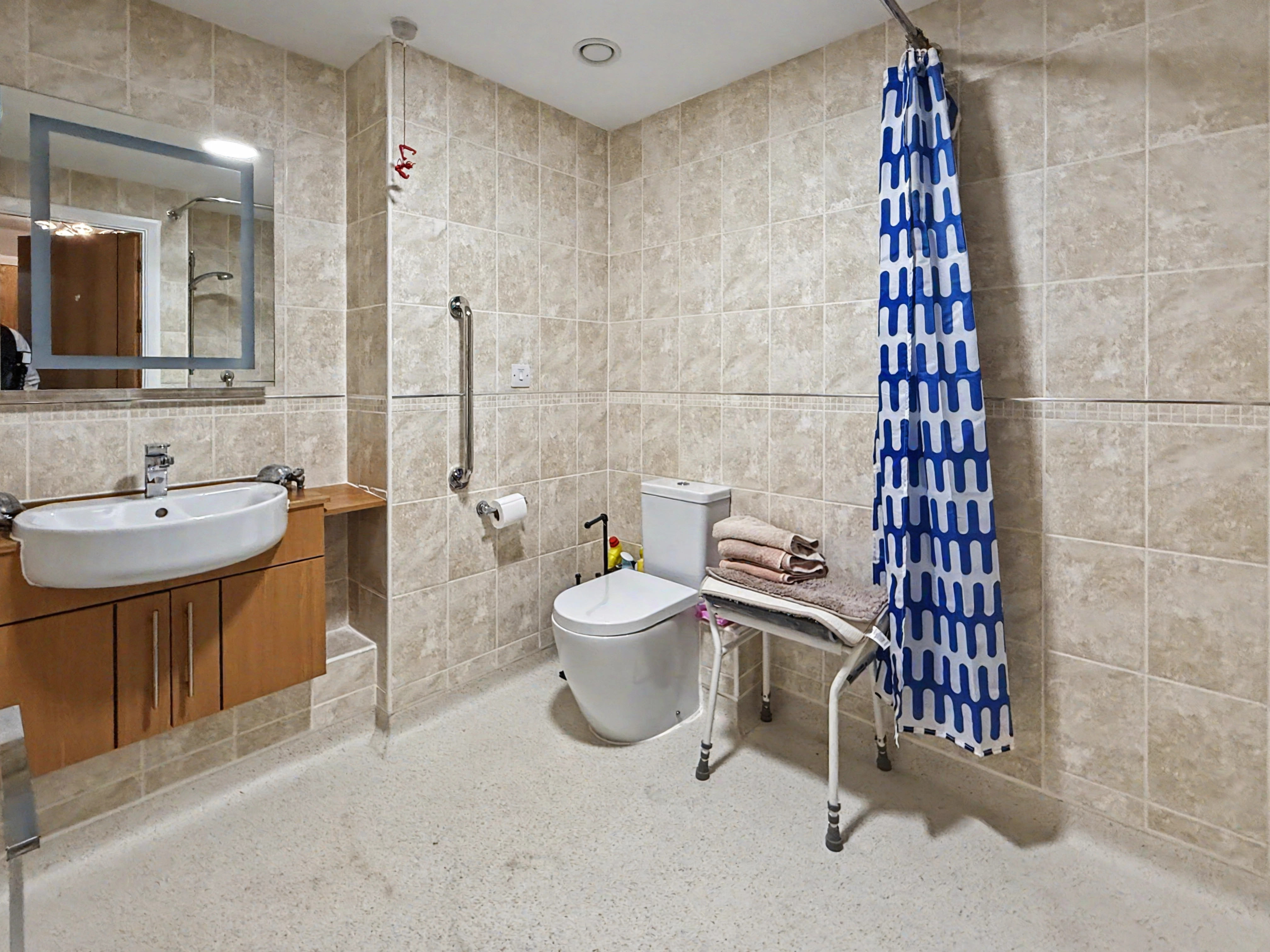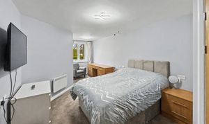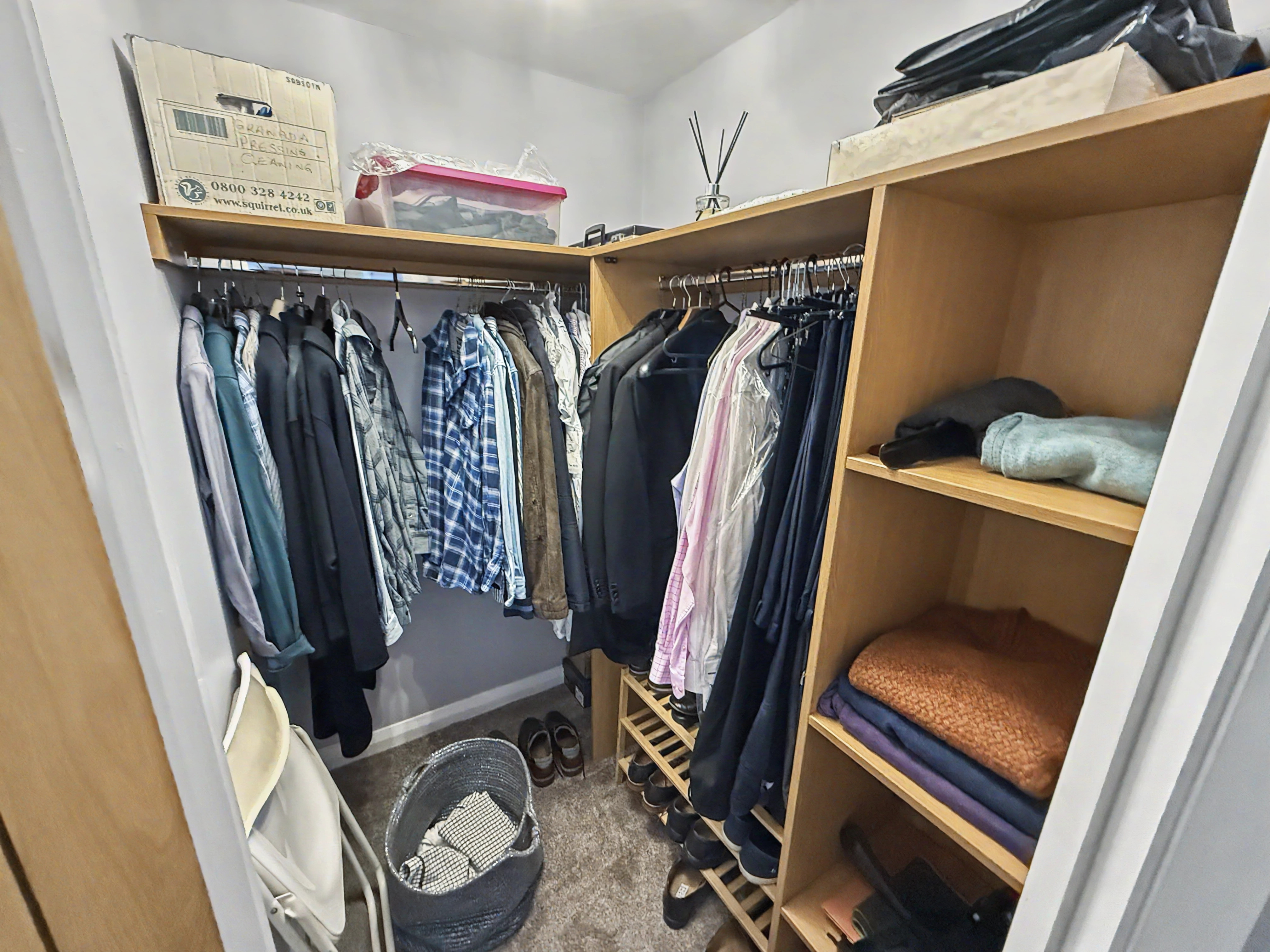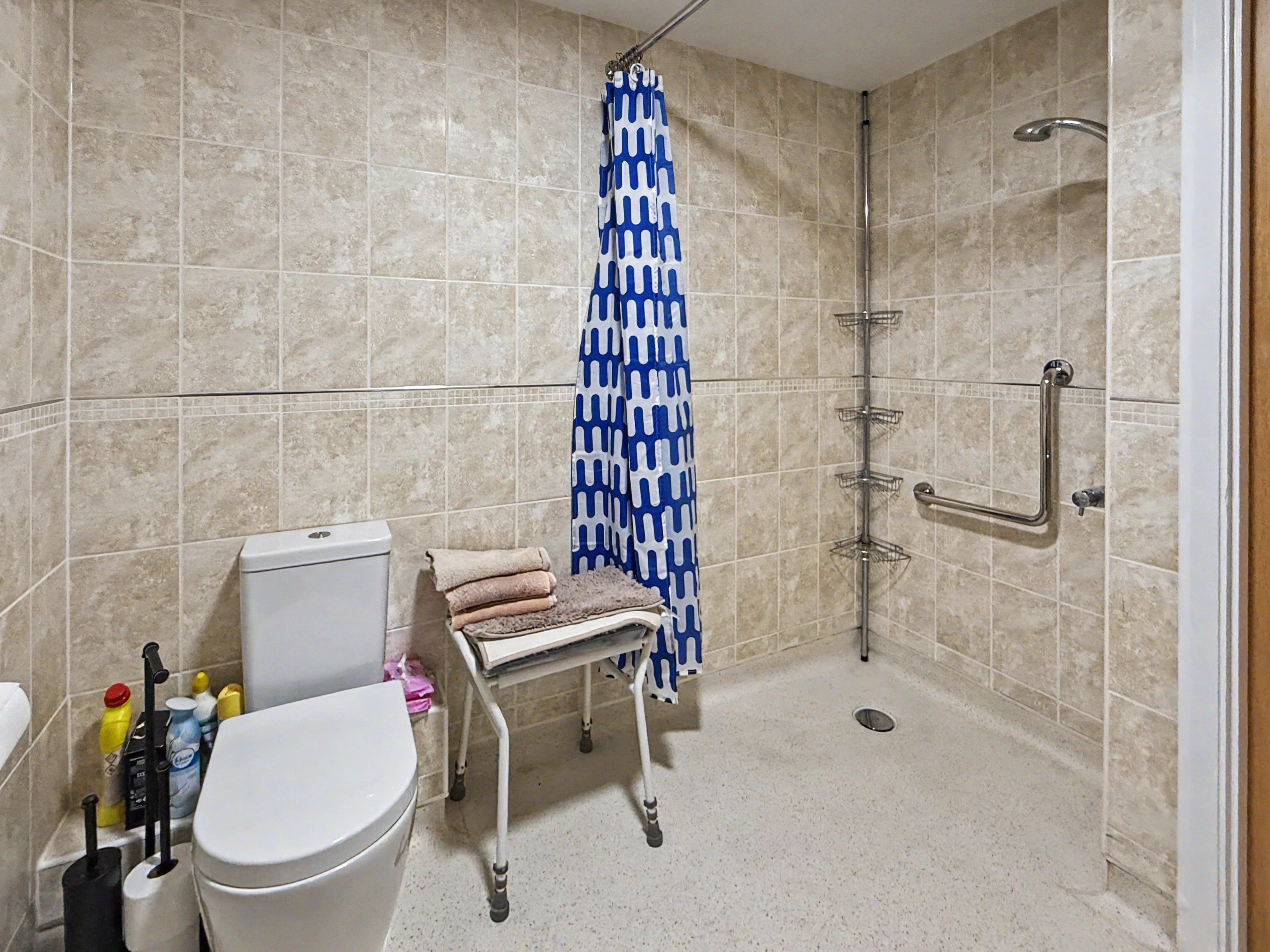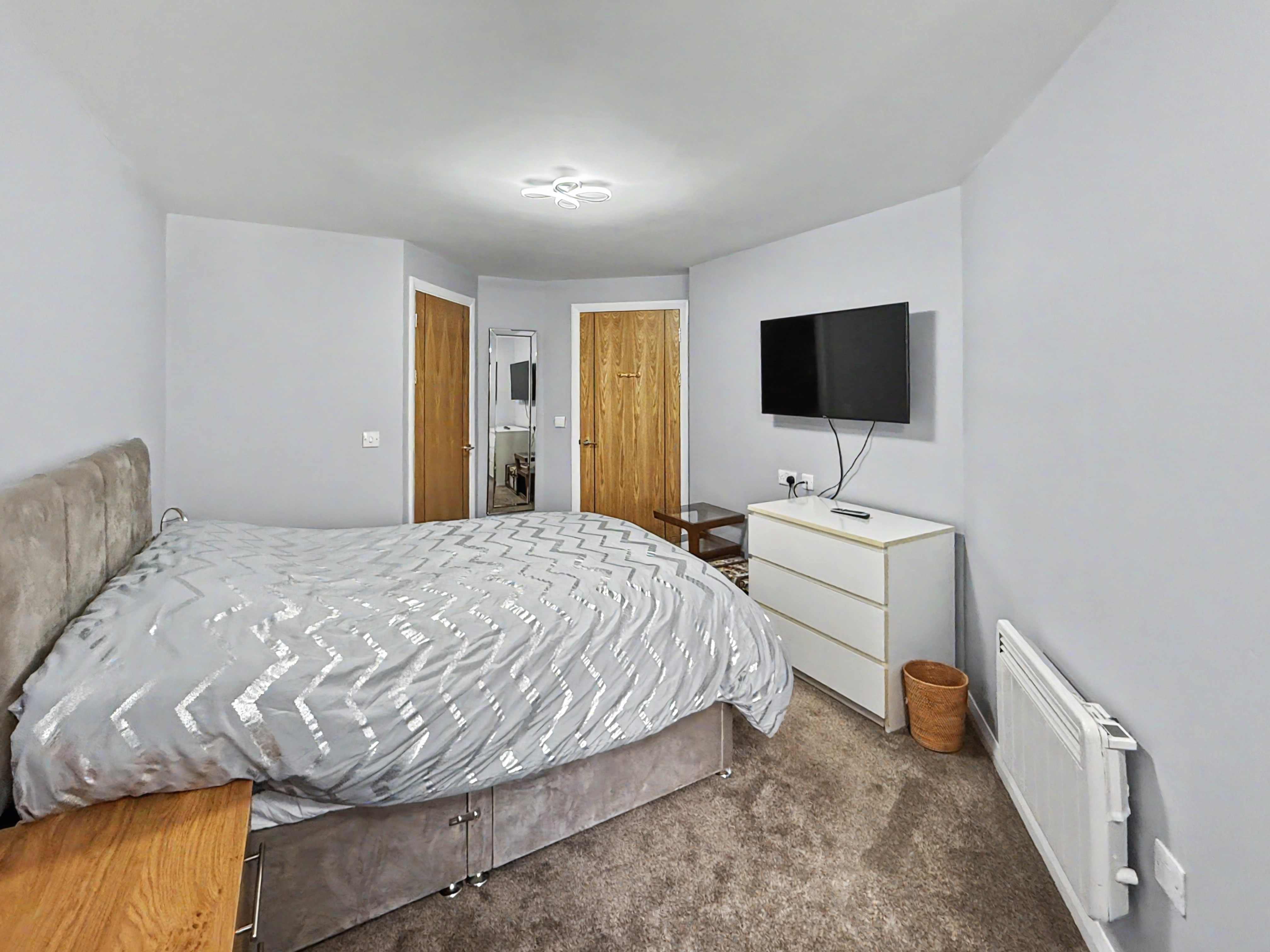 The bedroom is generous in size and features a walk-in wardrobe, providing excellent built-in storage. There is a Wet Room bathroom suite with a walk in shower, low level flush WC and vanity sink.