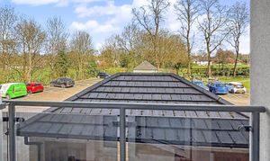 The apartment itself is thoughtfully laid out, with a bright and welcoming lounge that offers ample space for both seating and dining, and opens out onto a private balcony—perfect for unwinding with a good book or simply taking in the peaceful surroundings. The modern kitchen is well-appointed with practical worktop space and storage.