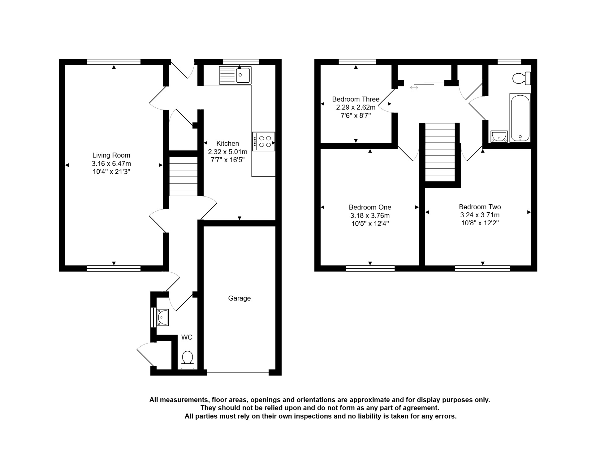 - Two double sized bedrooms and with the third bedroom being of a single