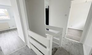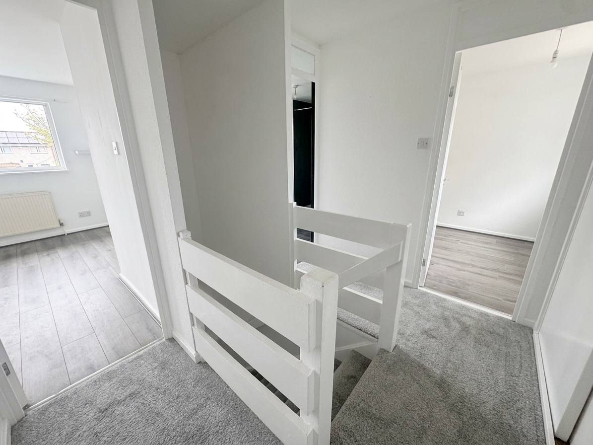 Carpeted, access to three bedrooms, a bathroom and a storage cupboard.