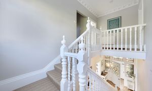 A graceful staircase takes you to the next floor, where there are four spacious double bedrooms. The master suite enjoys far-reaching views to the sea and has a luxurious en-suite with separate bath and shower. The dual-aspect second bedroom provides delightful natural light, while bedrooms three and four overlook the property's tranquil rear gardens. There is also a laundry/linen cupboard and a family bathroom.