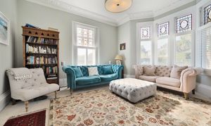 Spanning three spacious floors, the home offers an abundance of natural light and graceful interiors that have been carefully renovated, perfectly blending period elegance with modern comfort. Original features enhance the charm throughout, including a graceful turning staircase with a swan-neck handrail, decorative ceiling cornicing, ornate fireplaces, period panelled doors, and beautiful stained-glass windows.