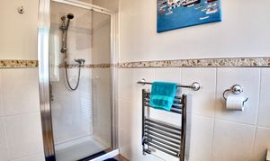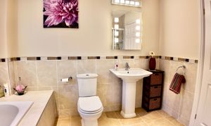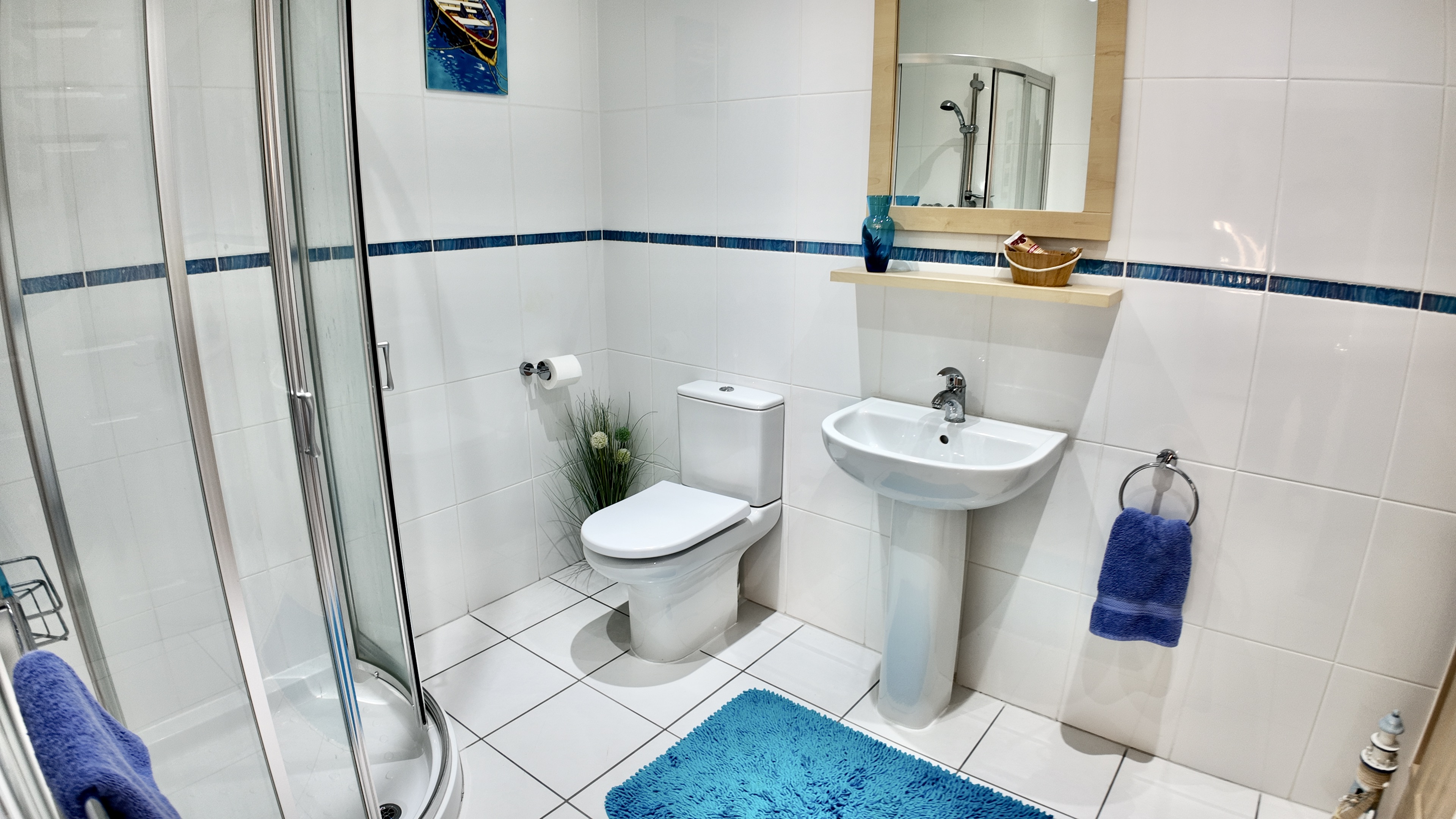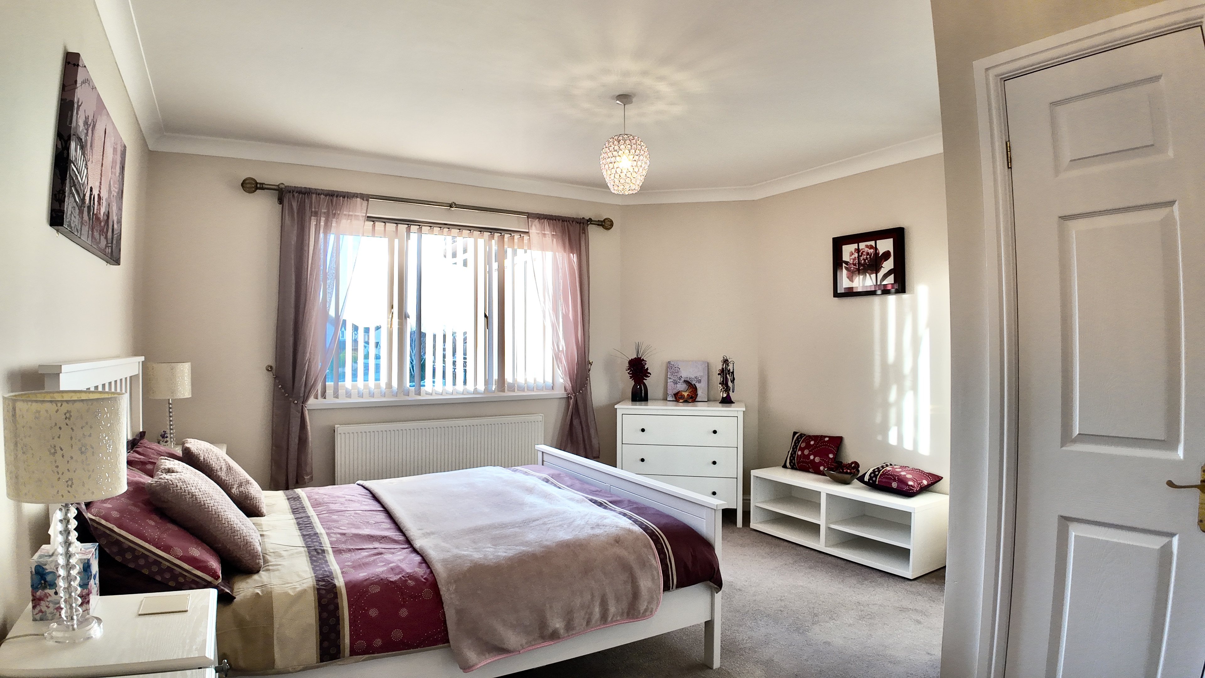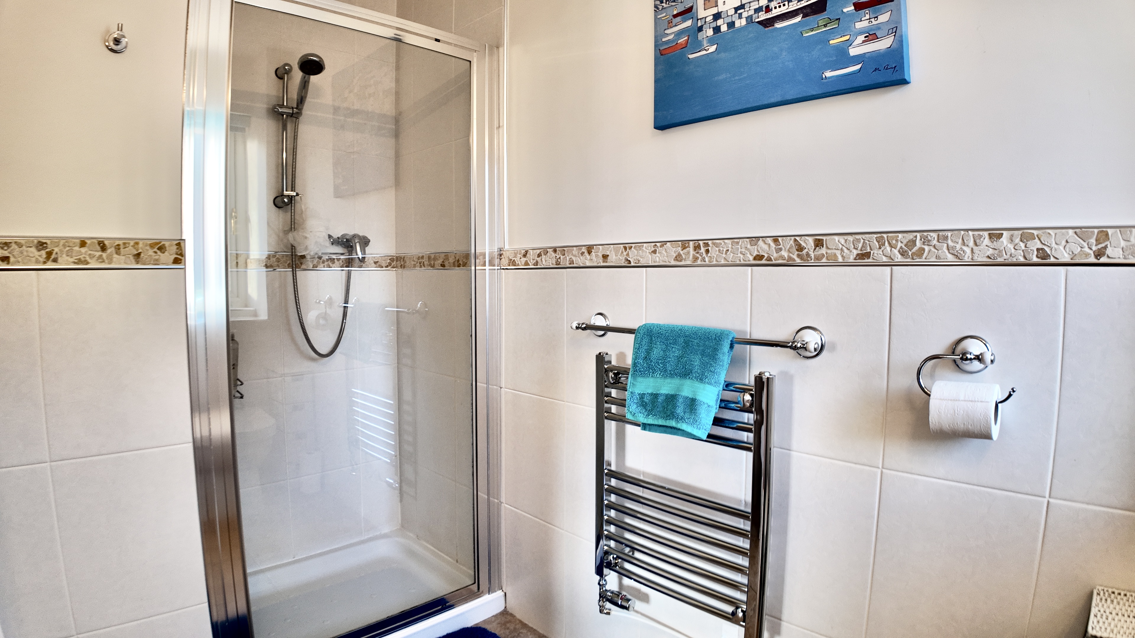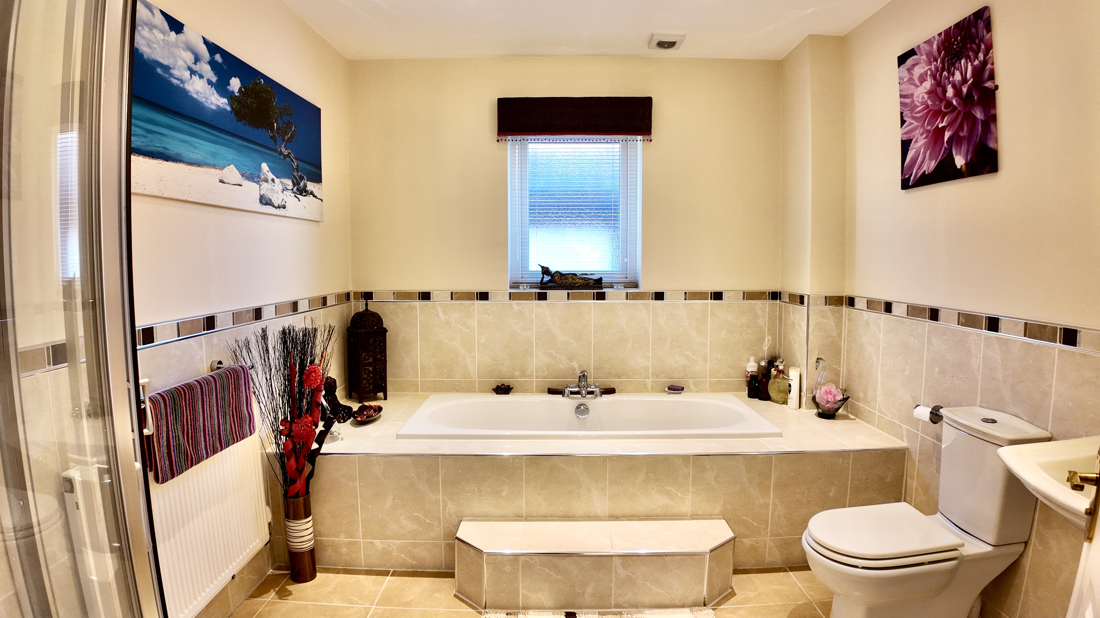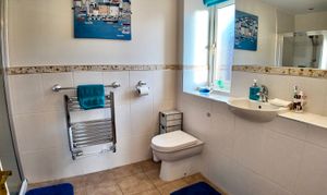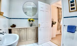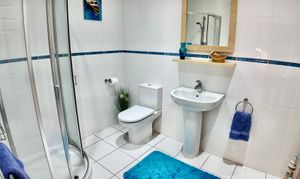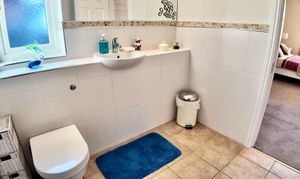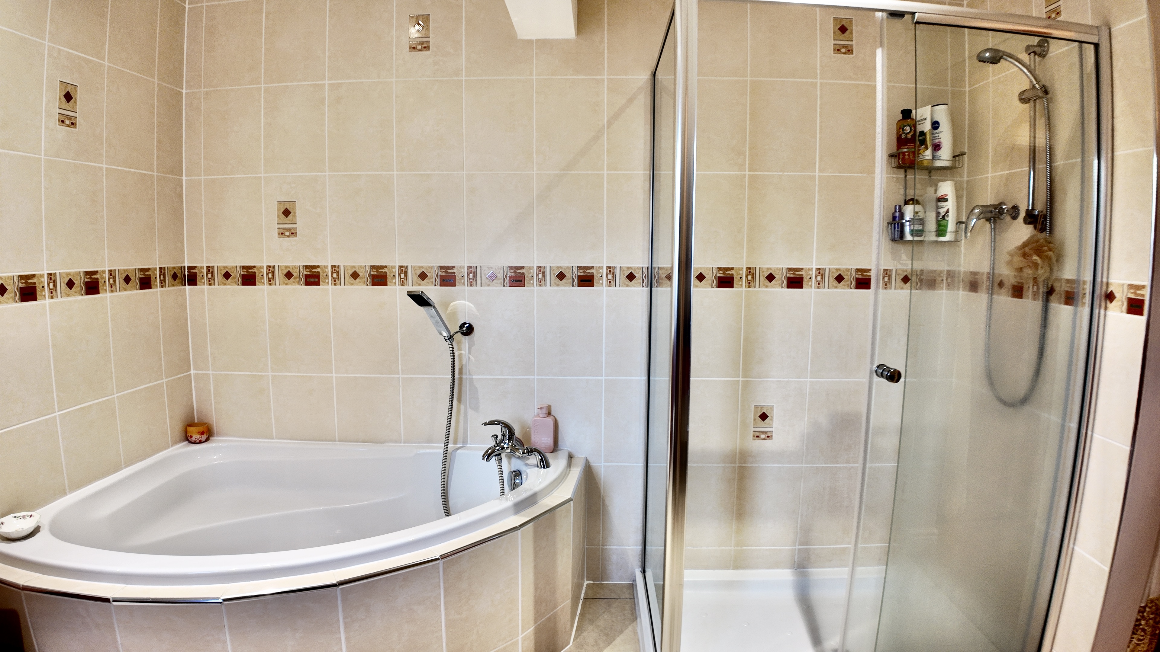 Two further double bedrooms each come with their own ensuite and built-in storage, making them ideal for older children or guests. The rear bedroom is a showstopper, with large windows that let the light pour in and its own crescent-shaped balcony for a private escape. There’s also a full family bathroom with a unique step-up bath, adding a touch of luxury, and a smaller single bedroom to the front, perfect for a nursery or study.