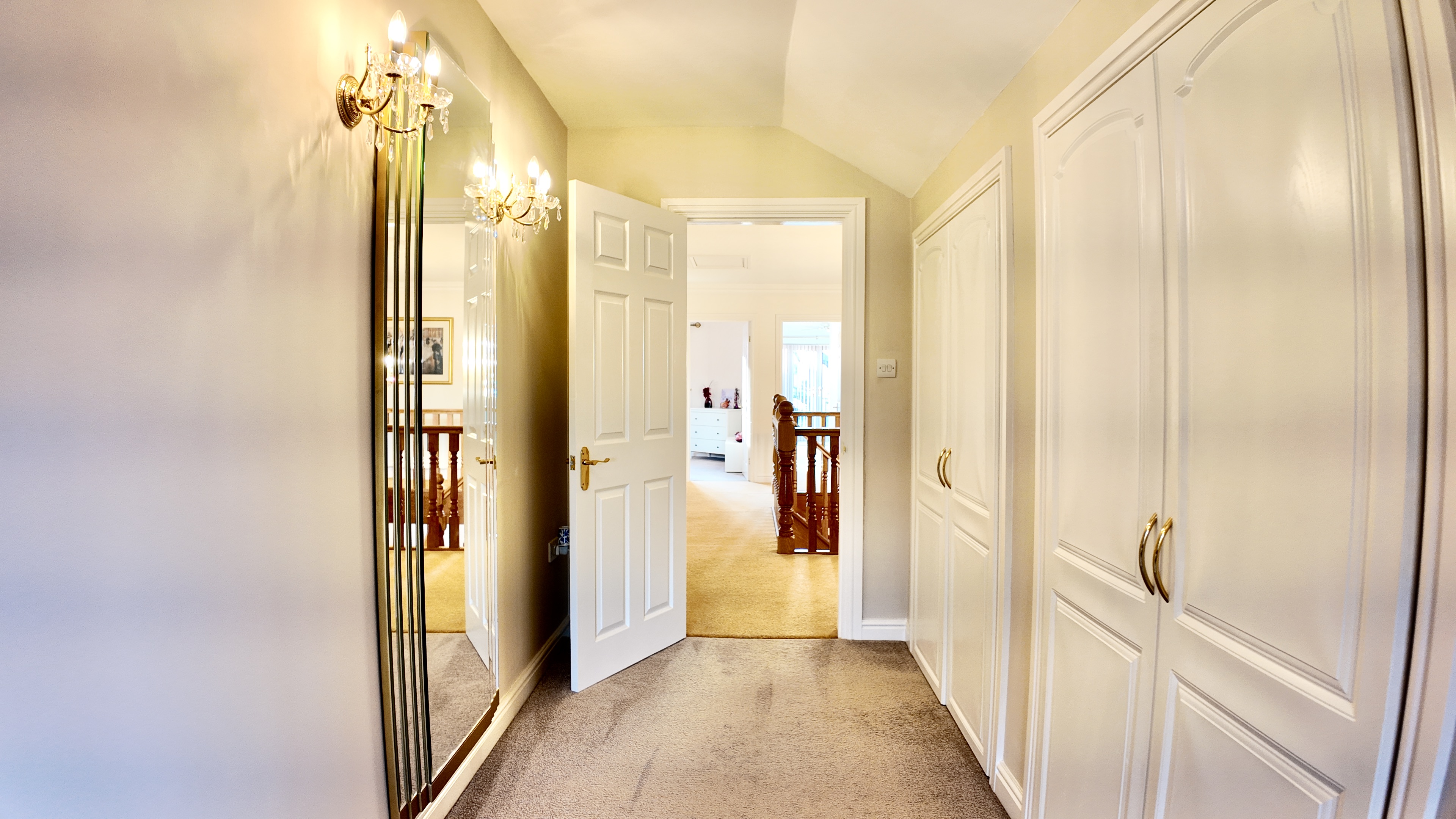 - Spacious wrap around landing with small balcony to the front of the property as well as built in storage.