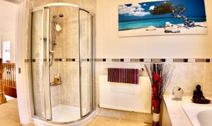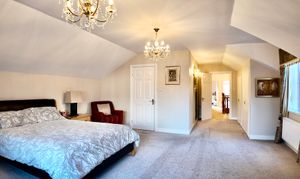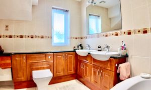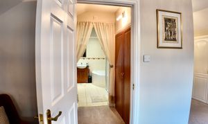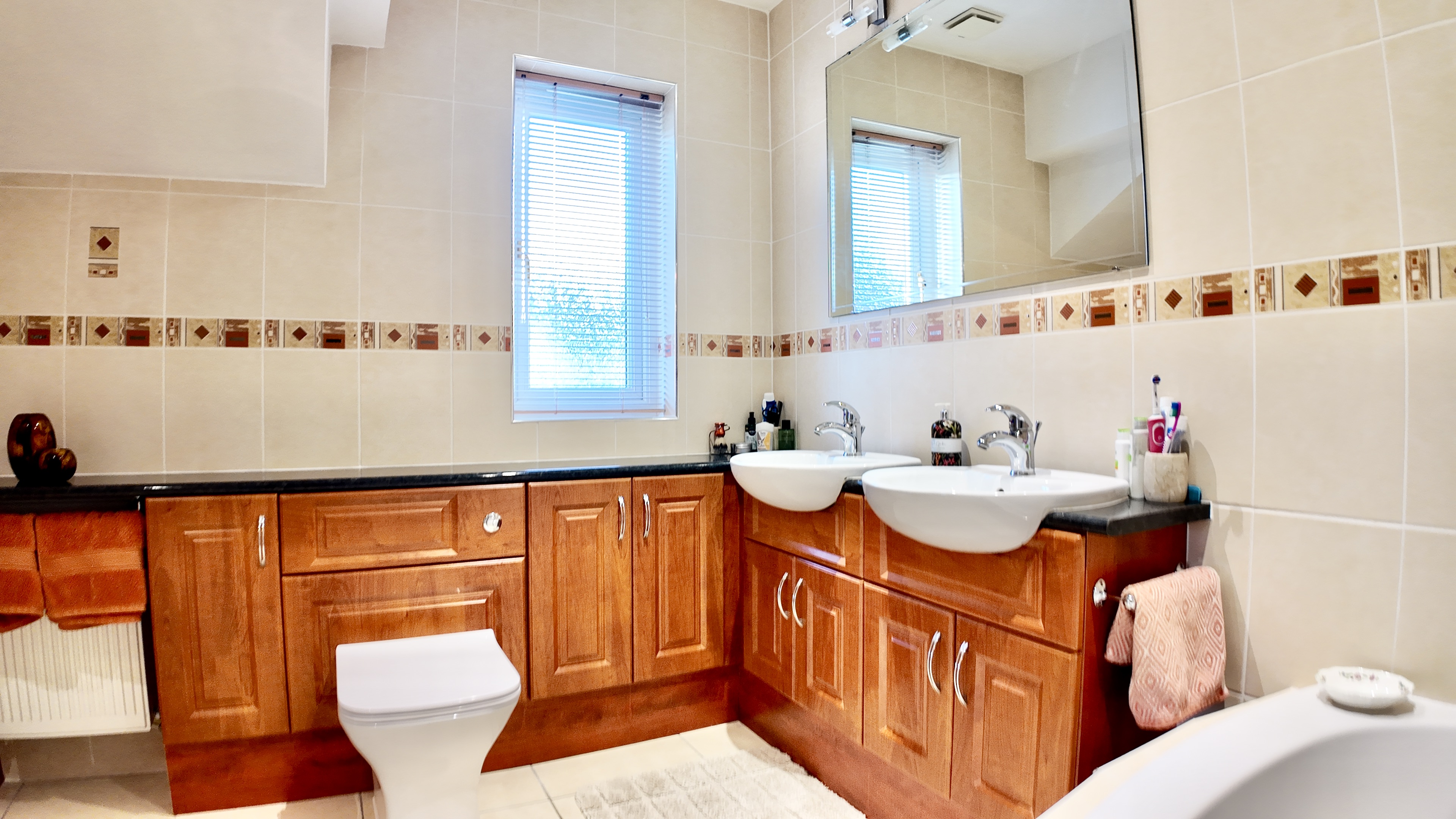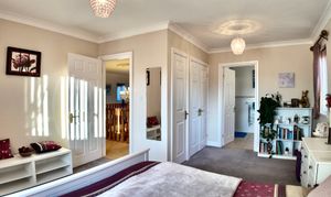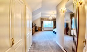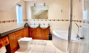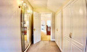 Upstairs, the wrap-around landing is both spacious and practical, featuring built-in storage and even a small balcony to the front, perfect for catching the morning sun. The master suite is truly enormous, offering ample built-in storage, a luxurious walk-through wardrobe, and a full ensuite bathroom complete with his and hers sinks - your own private retreat at the end of the day.