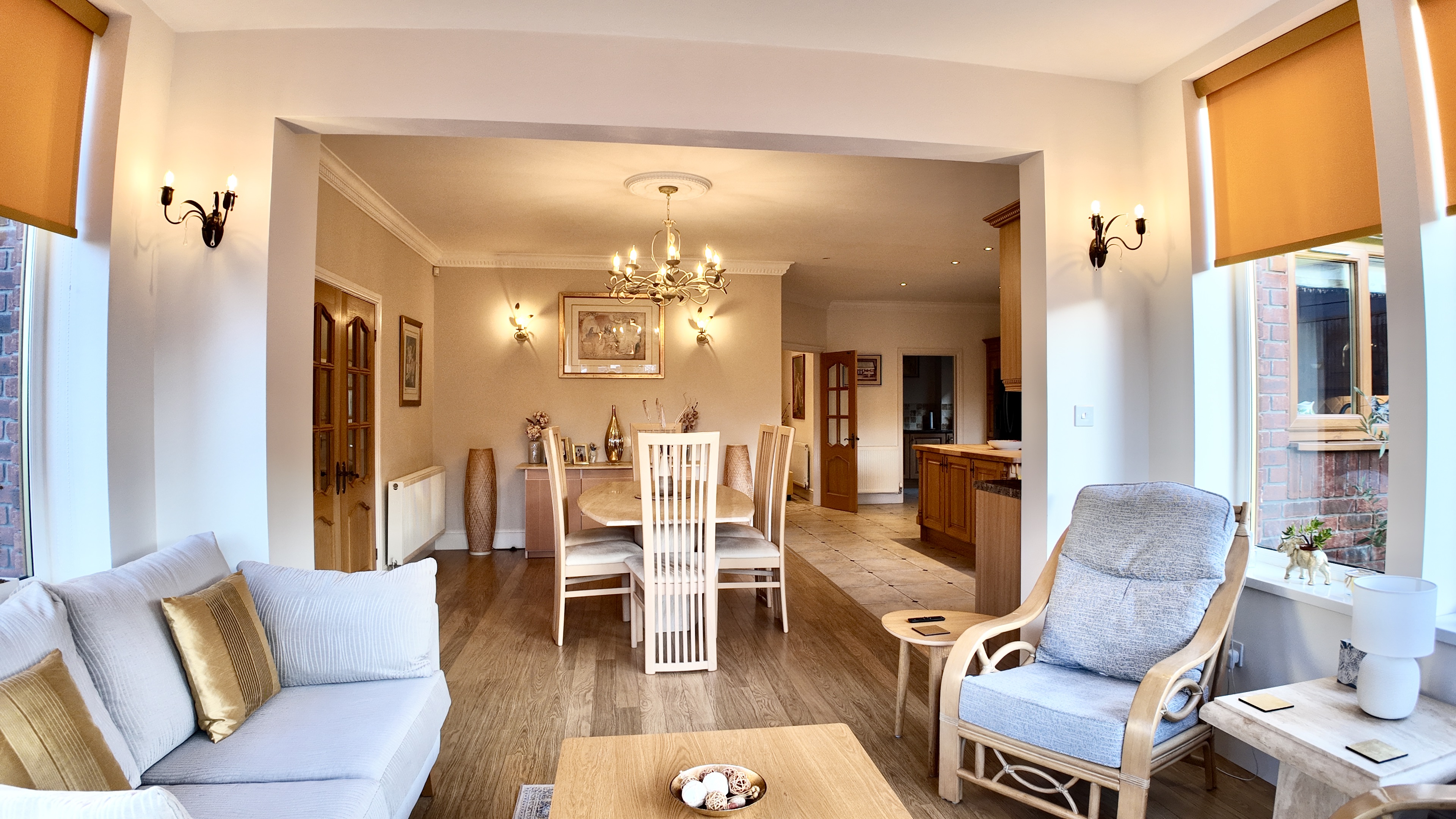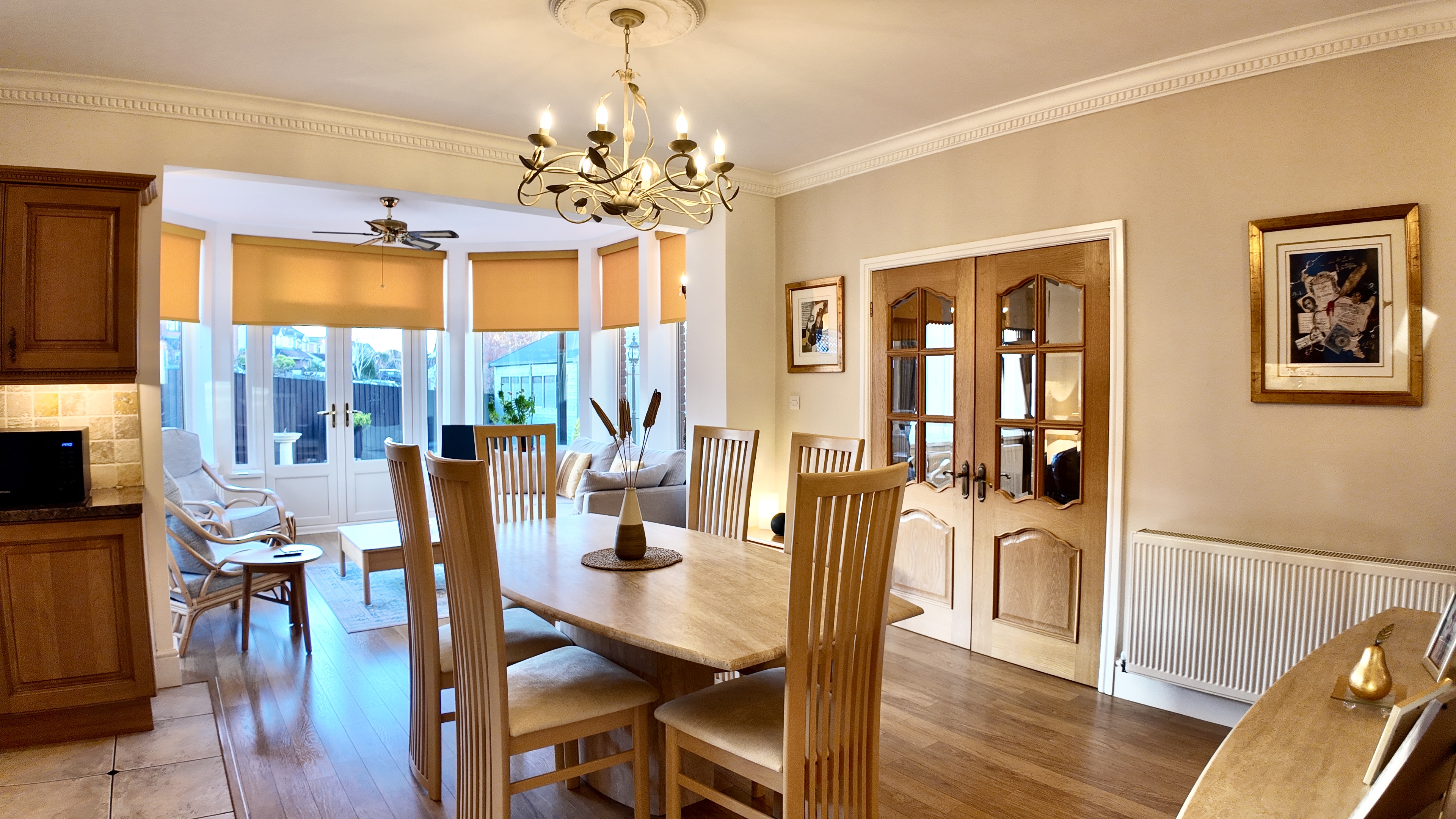 - Open kitchen/dining room with utility and sun room to the rear. spacious formal reception doors connecting to dining room, private office with bay window