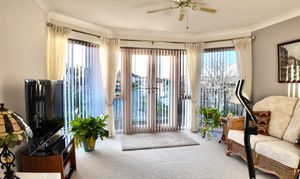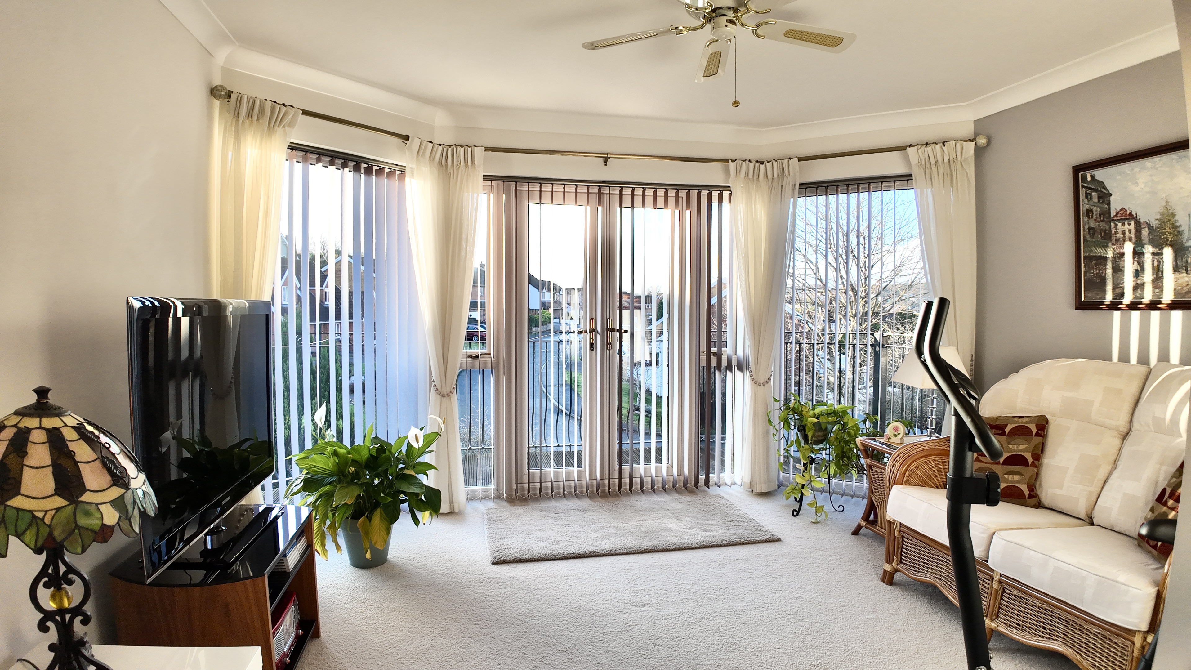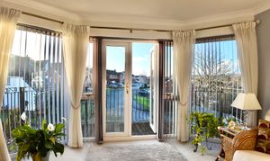 - Rear bedroom with large windows and its own crescent shaped balcony.