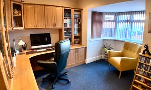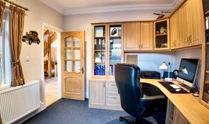 At the rear, the sun room is flooded with natural light and offers a tranquil spot to unwind or enjoy a morning coffee. There’s a second generous reception room off the main entrance hallway, giving you even more space to spread out or host friends and family. If you work from home, the private office with a charming bay window provides a quiet, inspiring environment.