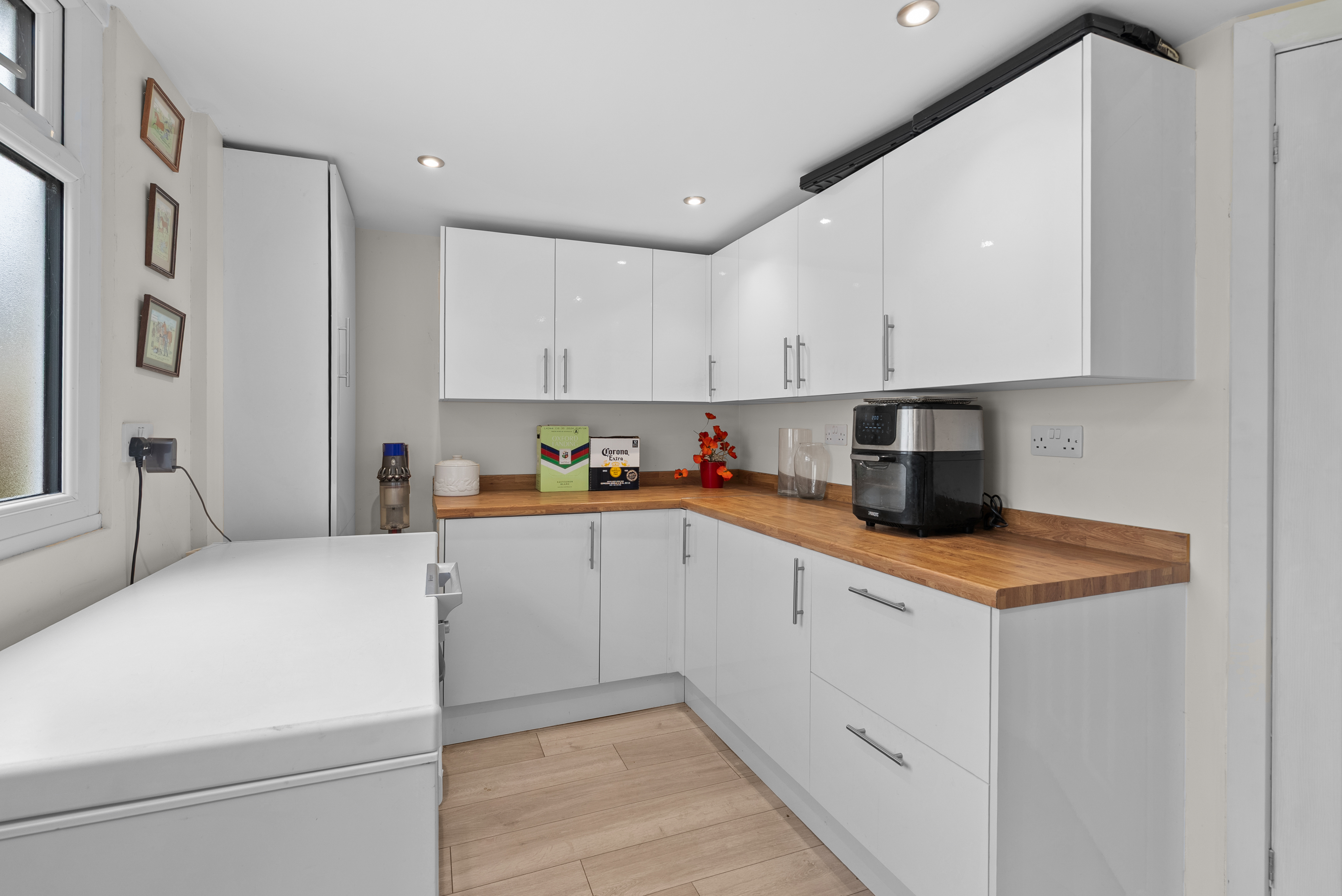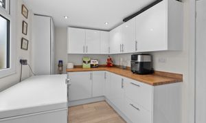 - Spacious dual-aspect L-shaped lounge/dining room with French doors to the garden