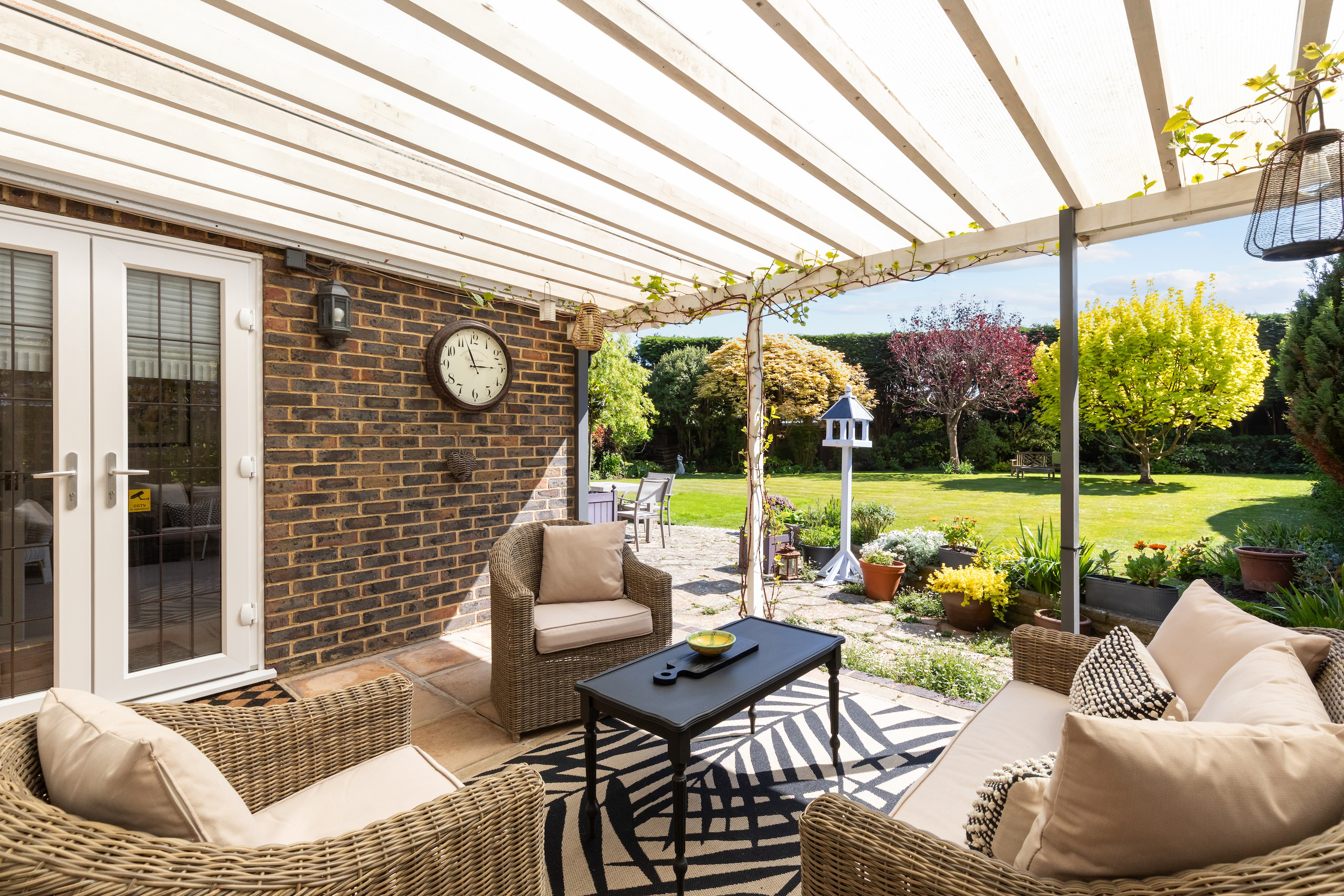 The beautifully landscaped south-facing rear garden is a standout feature of this home, offering various sections to enjoy. It is mainly laid to lawn with mature planting that provides complete privacy. A large covered patio area is perfect for al fresco dining, and there is also a versatile outbuilding with multiple potential uses.