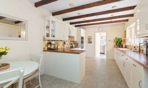 Ascending the galleried staircase, you are greeted by a spacious landing. The principal suite is particularly noteworthy, boasting serene garden views, built-in wardrobes, and an en-suite bathroom. There are four further generously sized bedrooms and a well-appointed family bathroom.