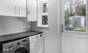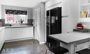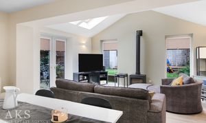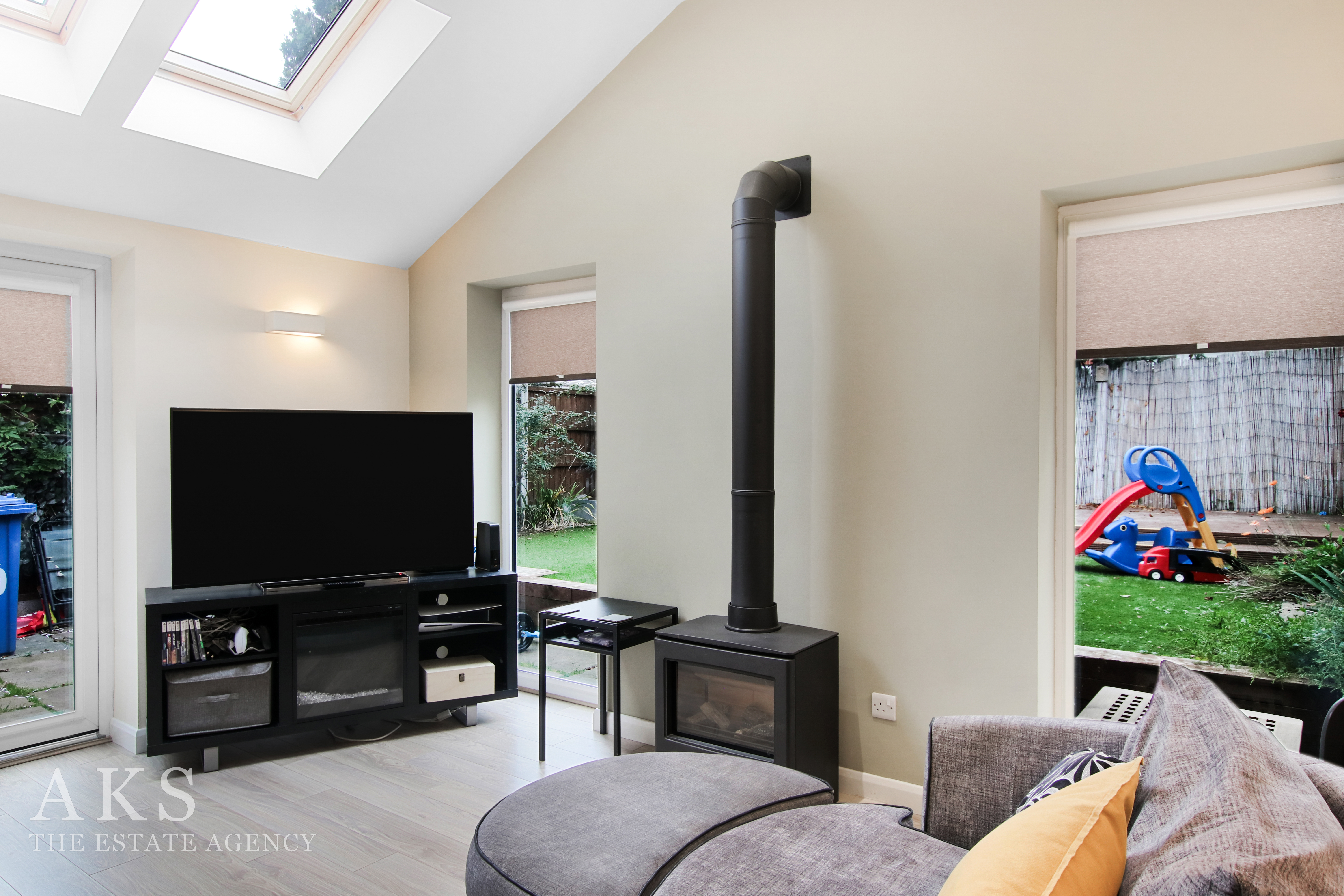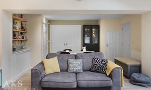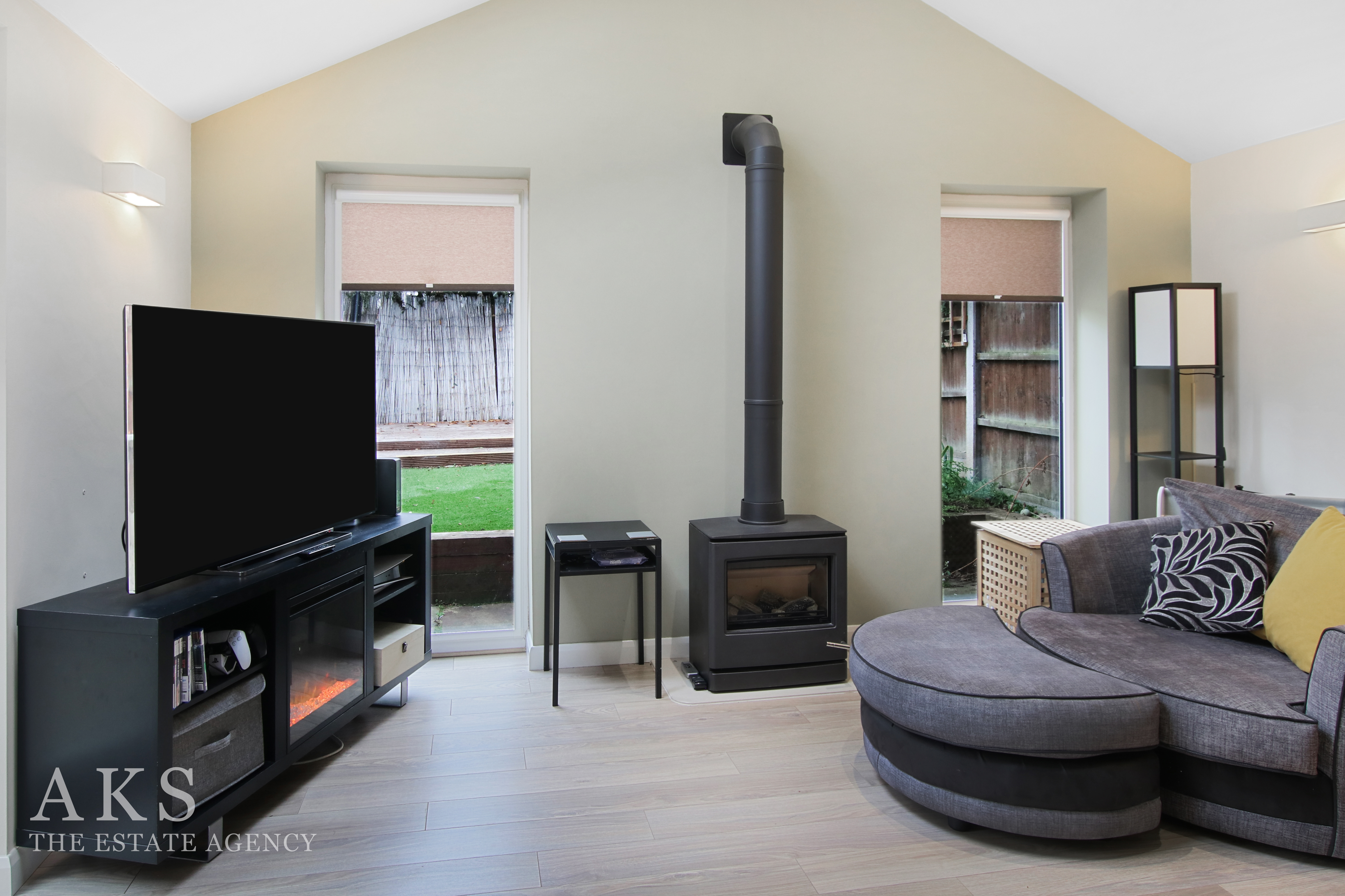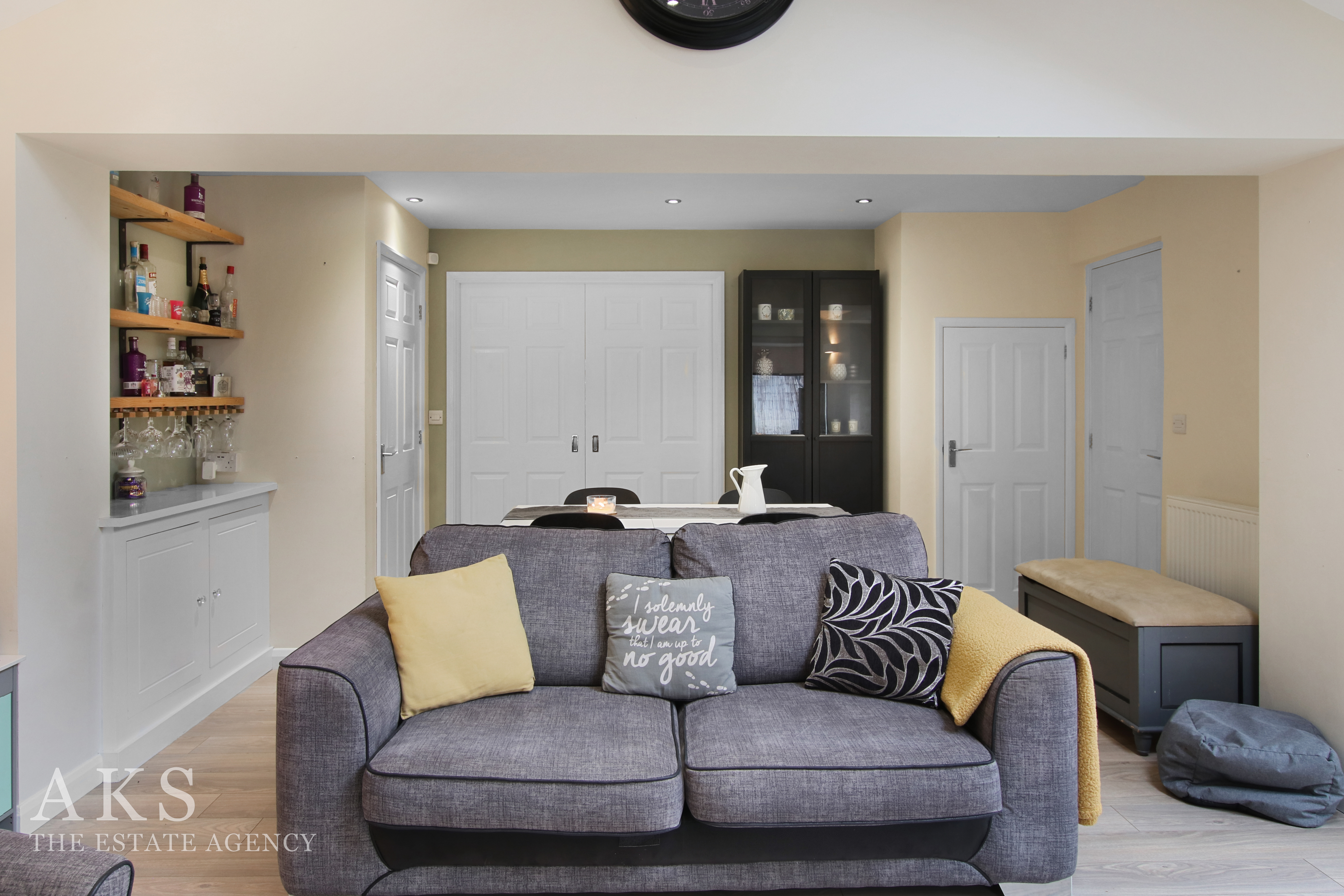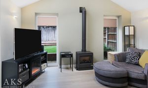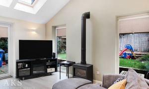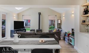“For me, versatility really is the buzzword with this home! The garage conversion has created a fantastic extra room downstairs that can be whatever you need it to be - a bedroom, playroom, or even a home office. The downstairs space overall is just brilliant. The living room sits at the back within the extension, with Velux windows filling it with natural light and a lovely log burner adding a cosy touch for those winter months. The room flows seamlessly into an area with a breakfast bar, then through to the modern, well-equipped kitchen, a perfect setup for bringing family and friends together. There’s even a handy guest WC as well as a utility down here too!