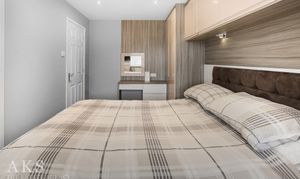 Upstairs, you’ll find four generously sized bedrooms, all with built-in storage. Bedroom One is a real highlight, featuring sleek fitted furniture and a stylish en-suite, a truly stunning space. The family bathroom is equally as impressive, with Bluetooth mirror, smart Aqualisa shower, a rainfall shower and a splash of colour adding a modern feel.