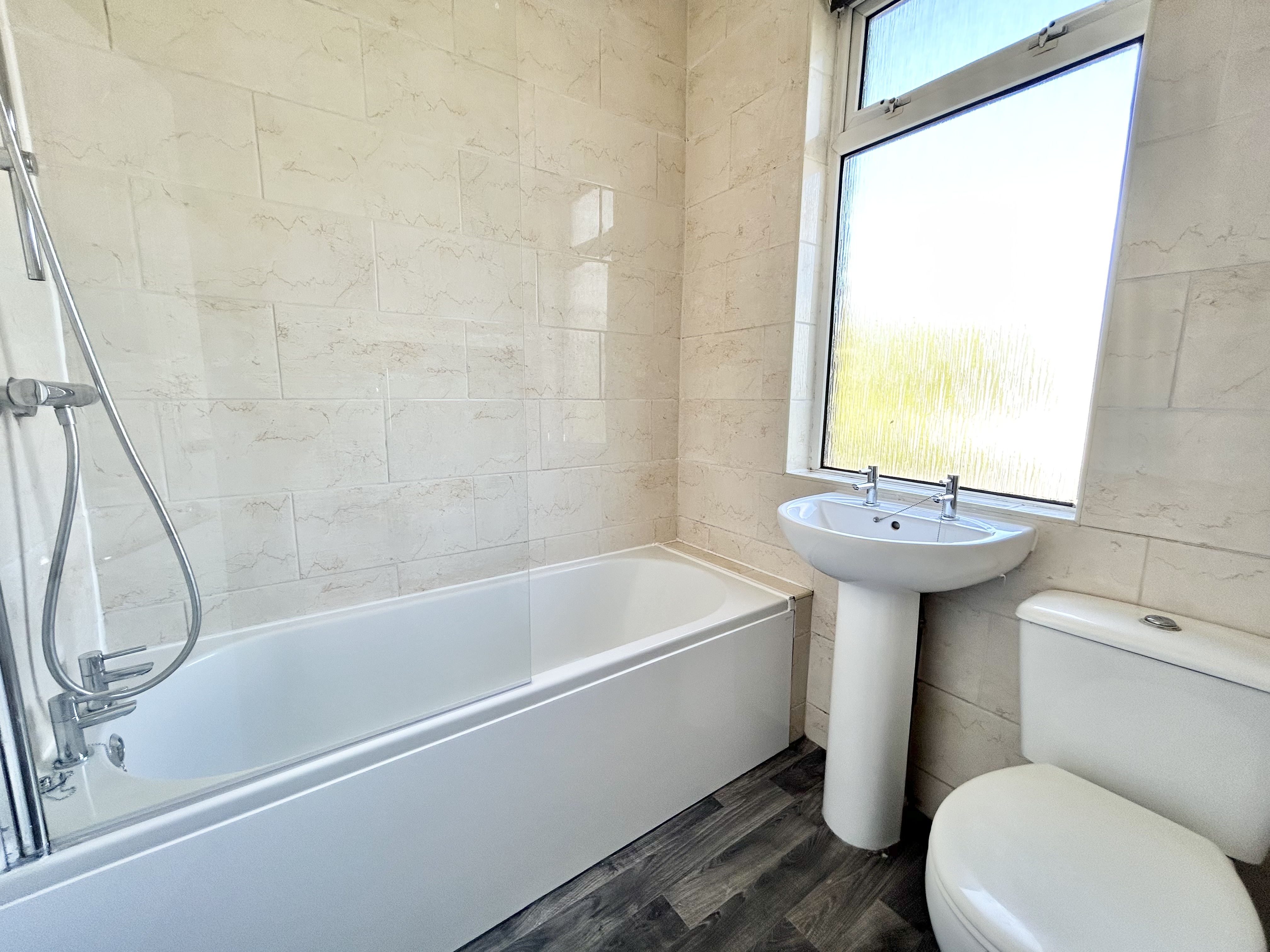 Frosted Window to the rear elevation. Fitted with Bath and Overhead Shower, Vanity Unit Hand Wash Basin and Low Level W.C.