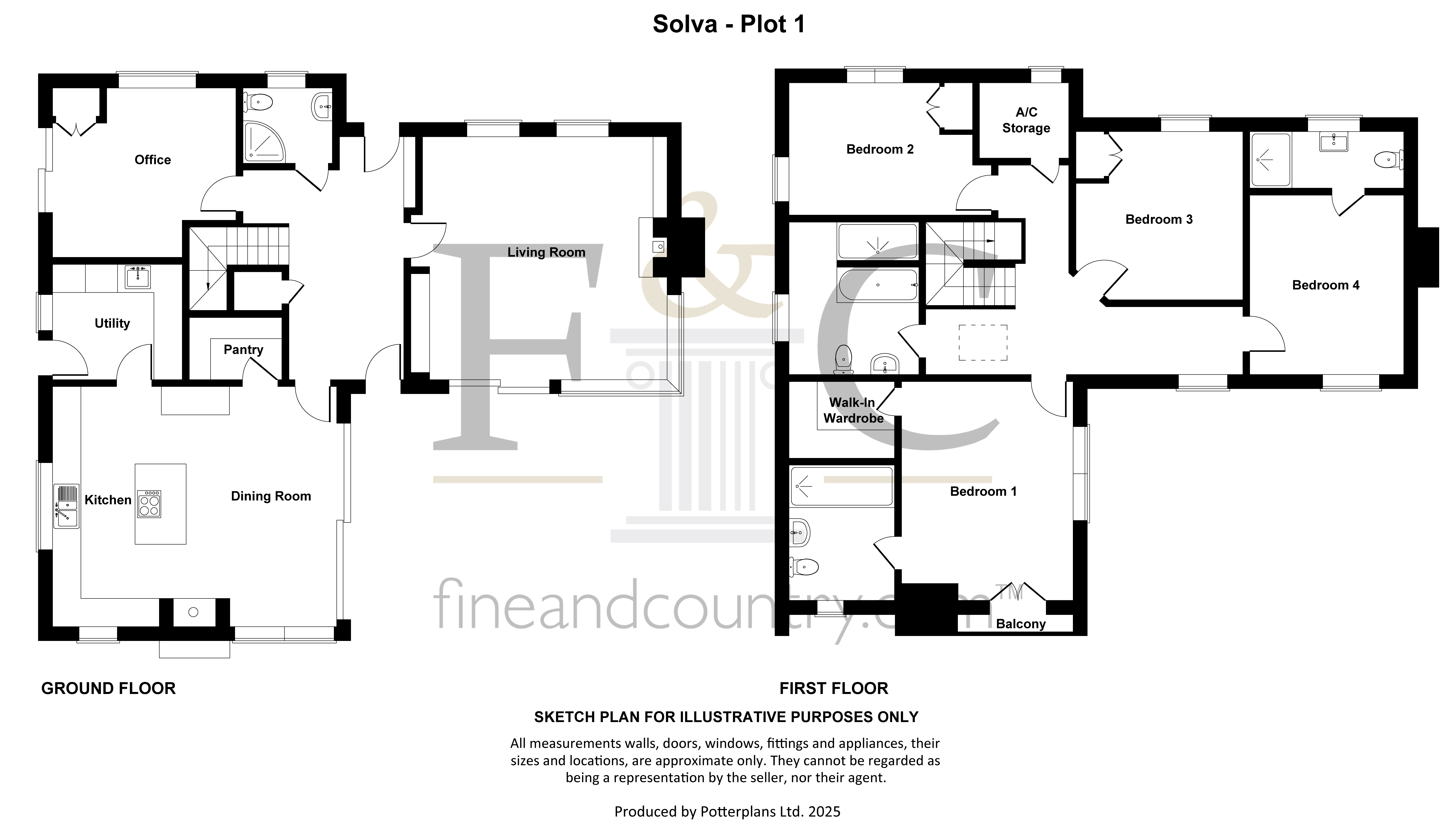 On the ground floor, the layout flows from a contemporary open-plan kitchen and dining area—complete with pantry and utility—to a large living room, ideal for family gatherings. A dedicated office provides valuable workspace for homeworking, while a cloakroom adds convenience.