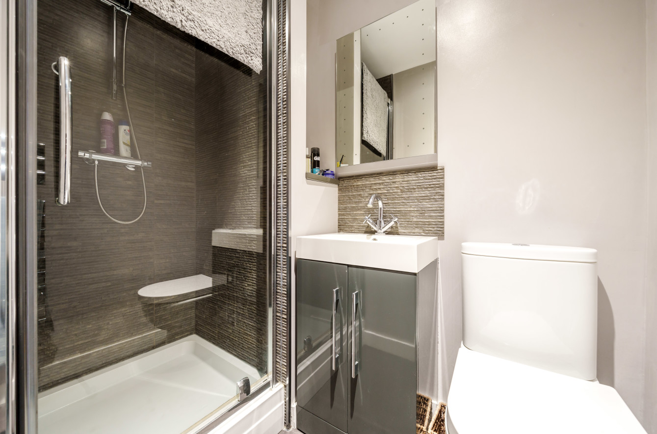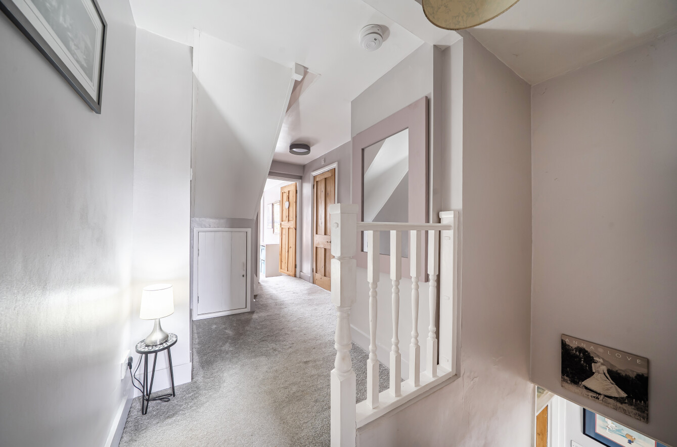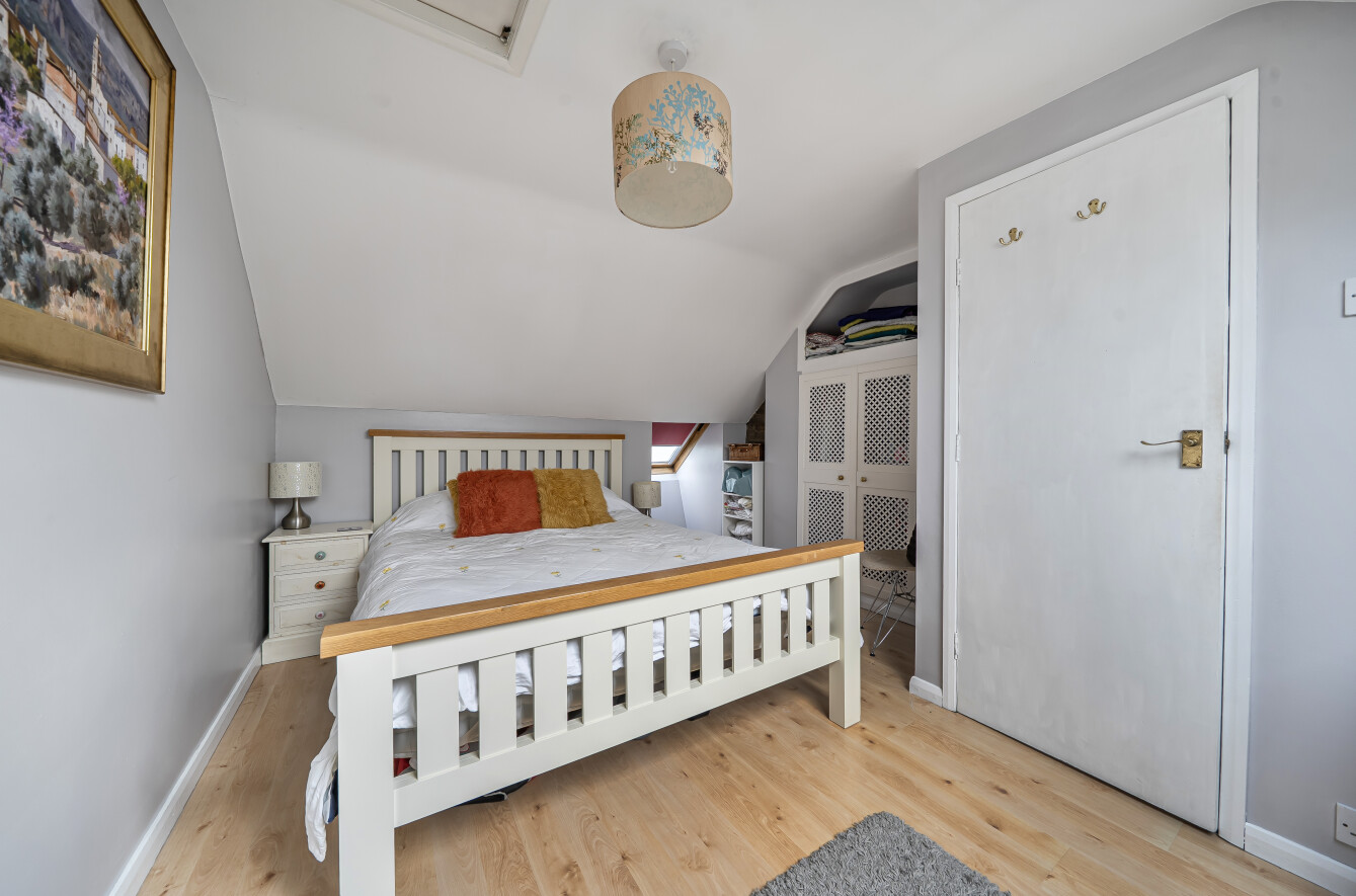 The central stairwell leads to the first-floor landing with access to one double bedroom with an en-suite shower room, a single bedroom and recently refitted family bathroom. A further stairwell leads to the second floor where there is a second double bedroom with built-in wardrobe & eaves storage.