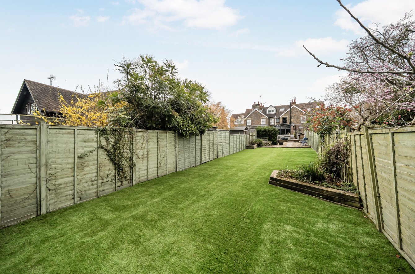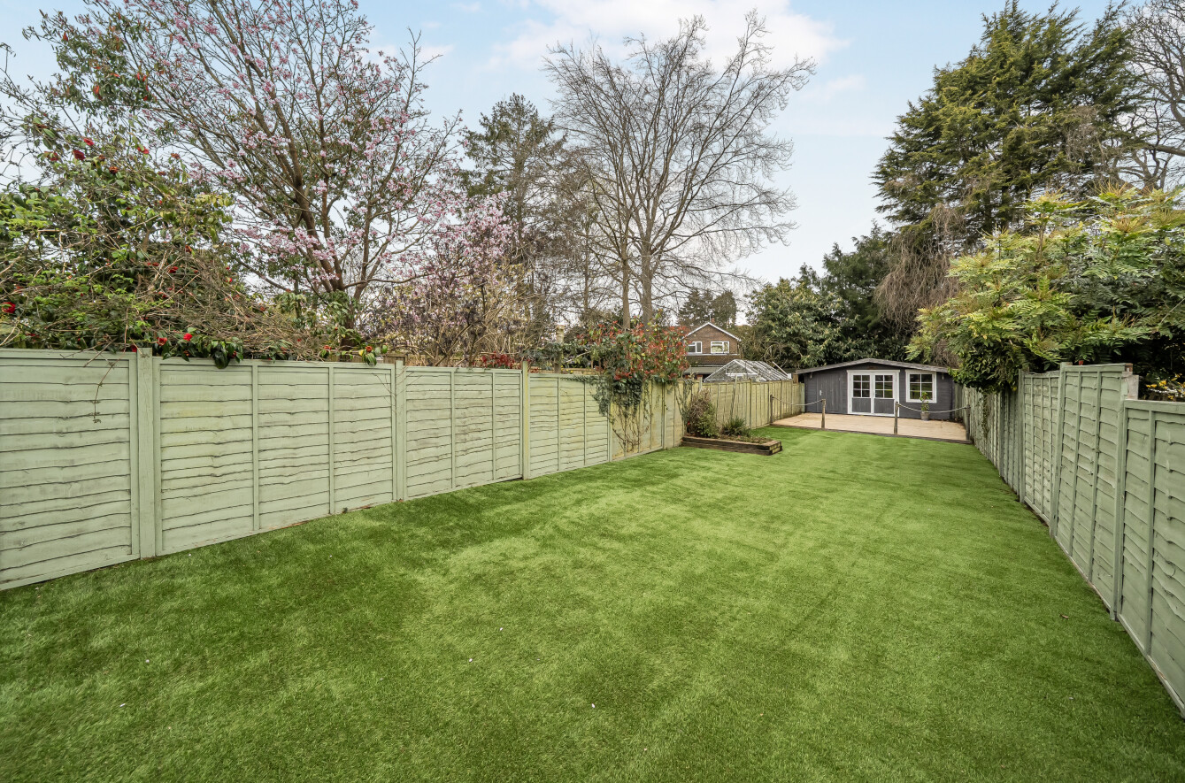 Generous south-west facing garden with home office/garden room (with power & lighting).
