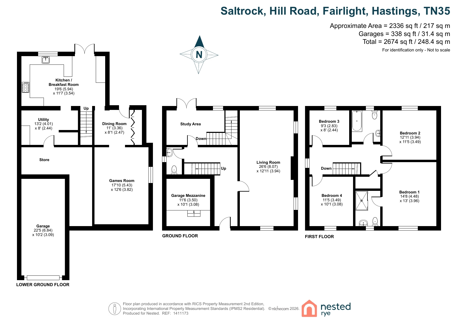 With overall accommodation in excess of 248.4sqm (2674sqft), on the ground floor, the accommodation comprises a large hallway, a triple aspect lounge, WC and a study/lobby area with access onto the stunning European style terrace. To the lower ground floor, there is a large kitchen/breakfast room, a large utility room and further large L-shaped store. A dining room and large games room also provide the potential to create the aforementioned annexe. To the first floor, there are four well appointed bedrooms, with an en-suite shower room to bedroom one, as well as a family bathroom.