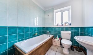Tiled flooring, double glazed window to rear with obscured glass, bath, low level WC, wash hand basin, radiator.