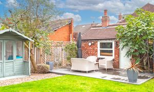 - Landscaped Substantial Enclosed Rear Garden With Brick Outhouse, Potting Shed, Summer House, Storage Shed & Greenhouse