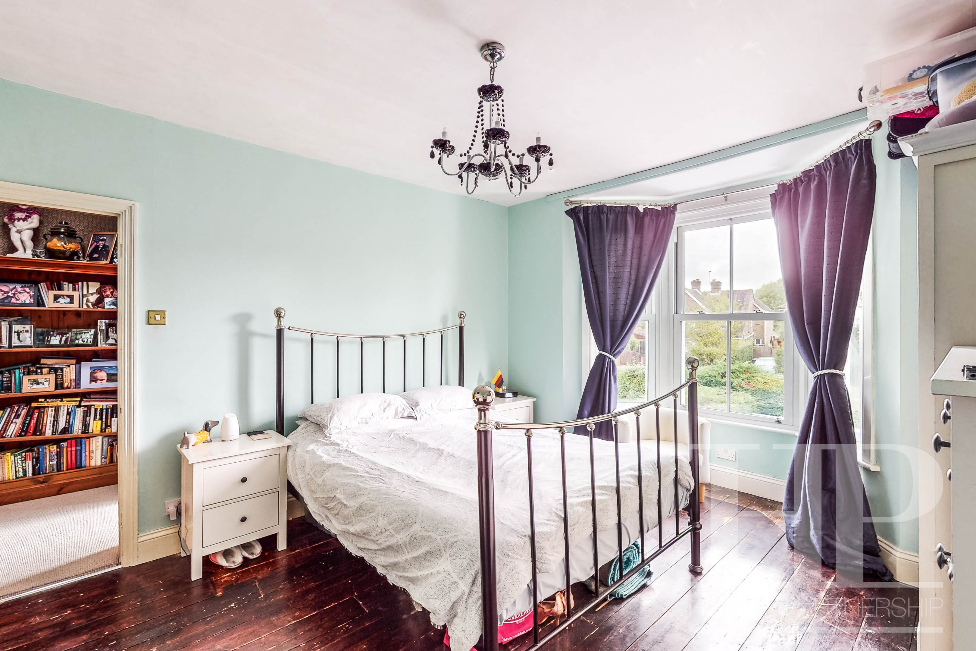 Radiator. Feature fireplace. Built-in wardrobe/cupboard with top cupboards over. Window overlooks the rear garden.