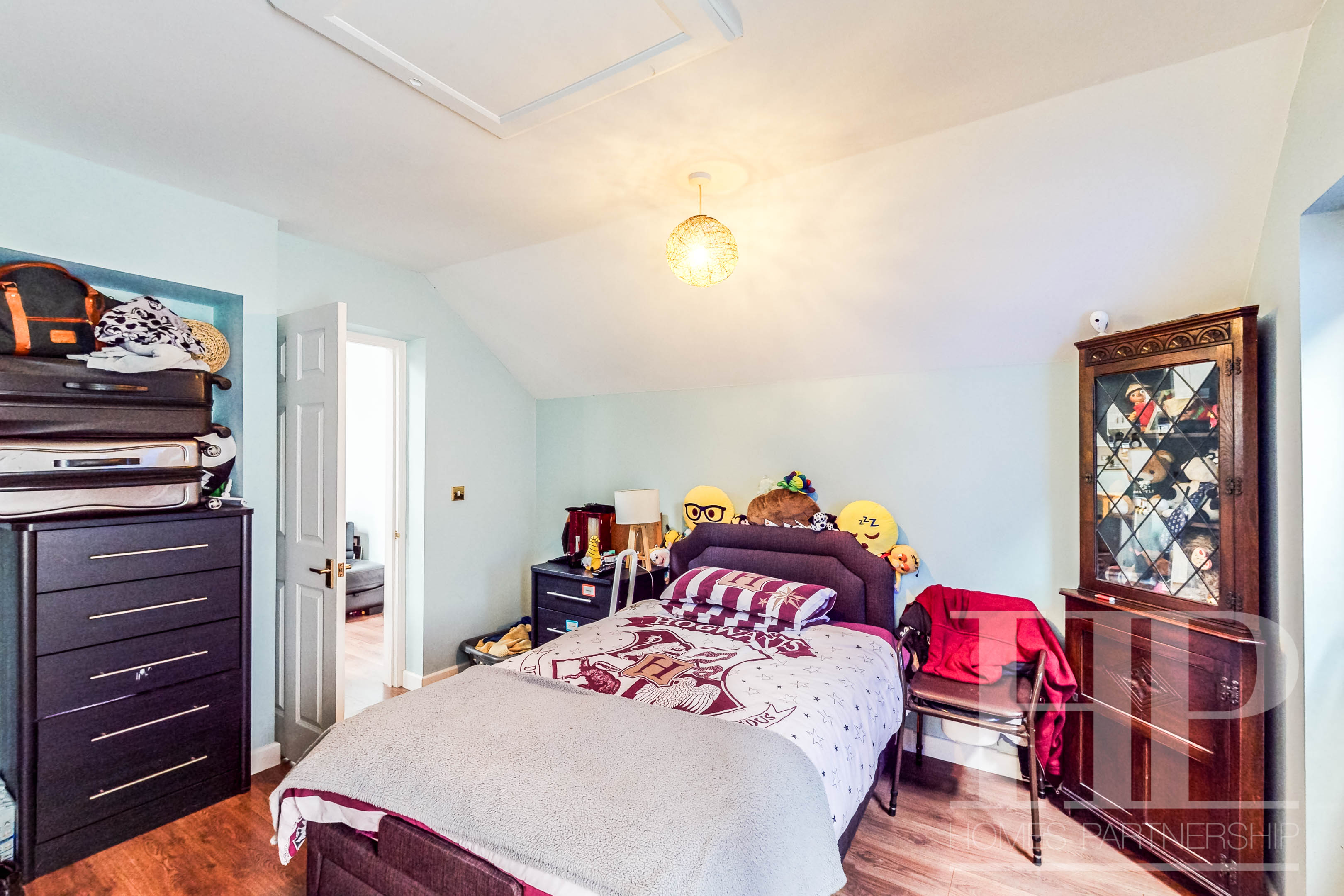 Stairs from the entrance hall. Hatch to loft space. Split-level landing with a bedroom and bathroom on this level and four stairs lead to three bedrooms.