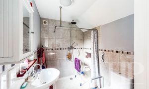 Refitted with a white suite comprising a shower cubicle, a back-to-wall low-level WC, and a wash hand basin with vanity cupboard below. Heated towel rail. Extractor fan.