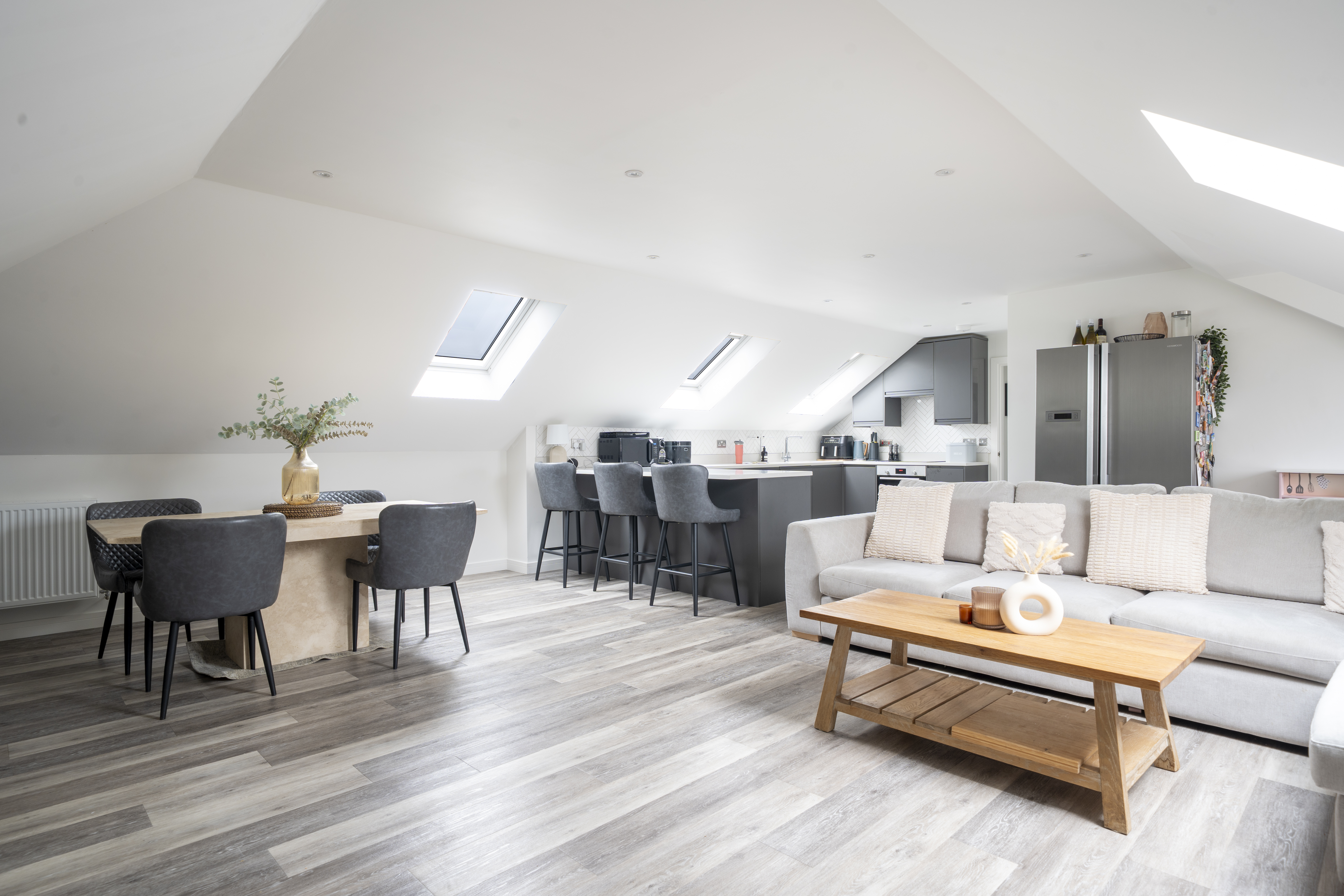 A high-specification three-bedroom penthouse apartment set within a recently developed former Police Station in the heart of the sought-after village of Bottisham, just a short distance from Cambridge. This stylish home offers an impressive open-plan kitchen, living, and dining area featuring high-quality fittings, quartz work surfaces, and integrated appliances, creating a perfect space for modern living and entertaining. The property is beautifully finished throughout, showcasing excellent attention to detail and contemporary design, along with useful and generous storage within the eaves.