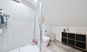 The apartment comprises three well-proportioned bedrooms, all with fitted wardrobes, including a generous main bedroom with an en suite shower room. There is also a modern family bathroom and ample storage throughout. Externally, the property benefits from allocated parking for two vehicles, additional visitor spaces, and communal bin and bike stores. Remaining NHBC warranty offers peace of mind, and the apartment is held on a long lease, making it an ideal home in a well-served and desirable village location.