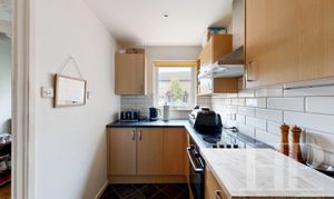 - Fitted kitchen with built-in oven and hob