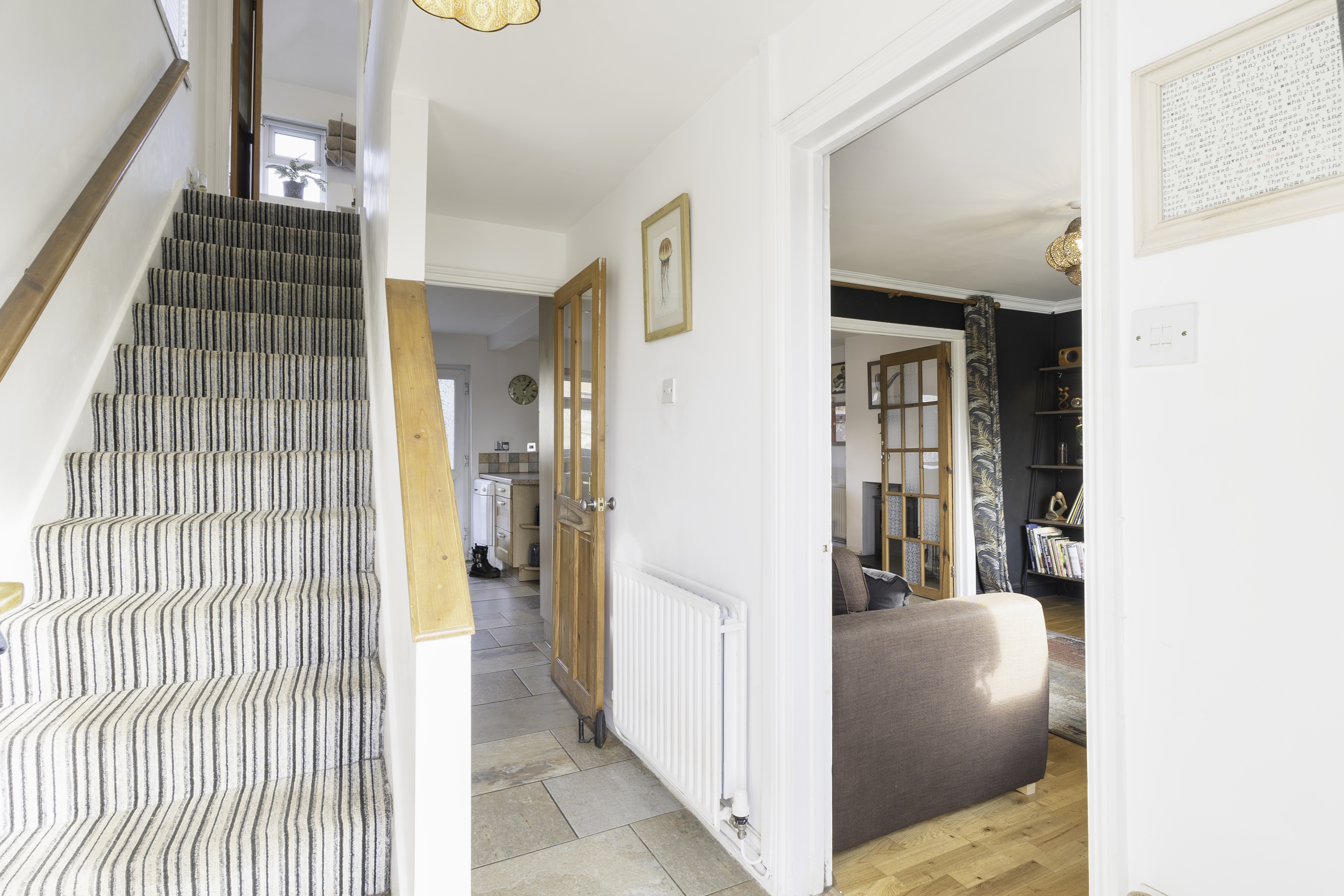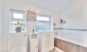 The property also benefits from a useful enclosed lean-to storage area on the side, offering convenient space for bikes, tools, or outdoor equipment. Upstairs, you'll find three well-proportioned bedrooms, with the modern family bathroom offering a stylish and comfortable space to unwind.