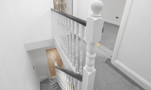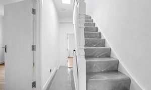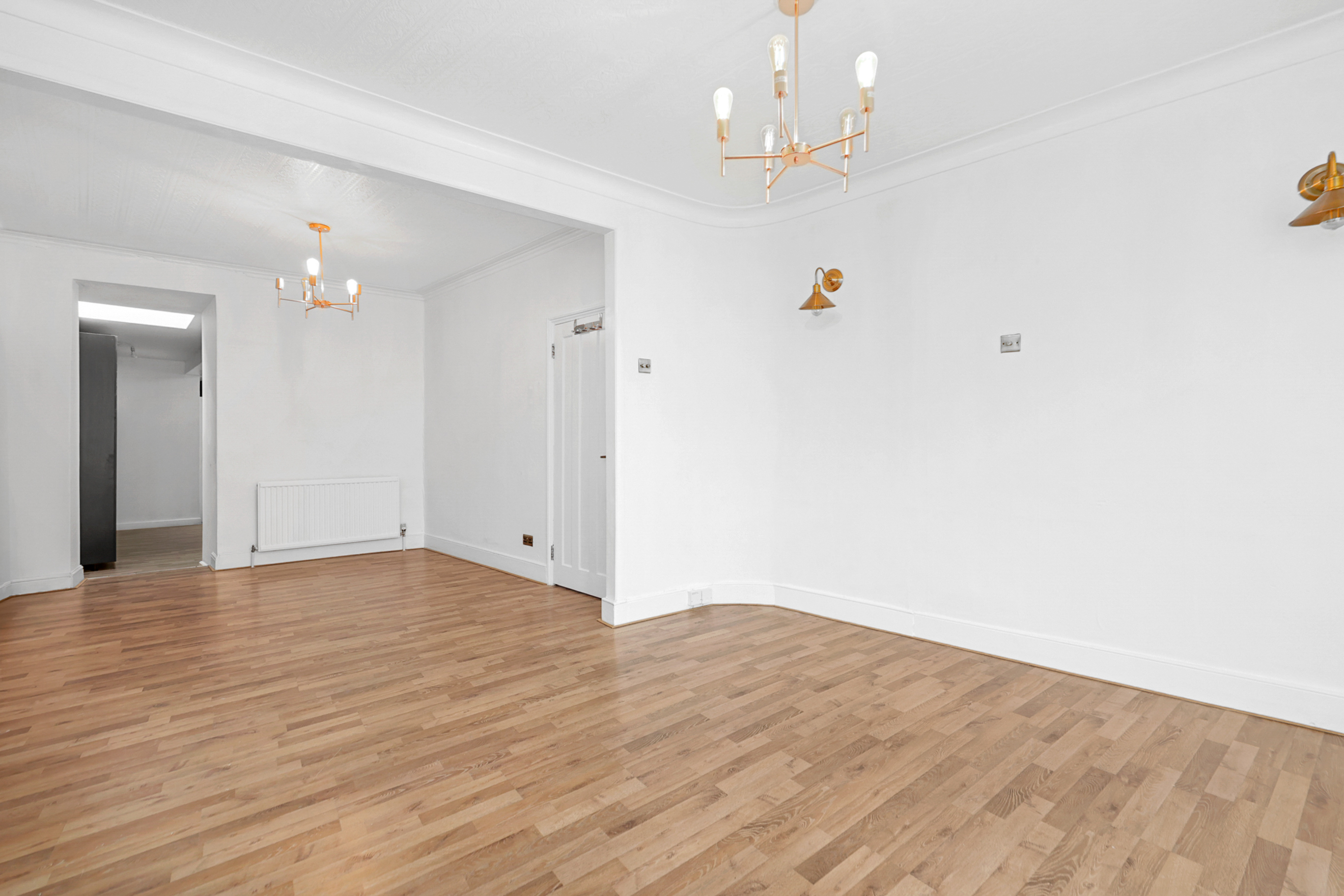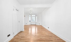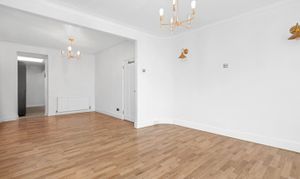 A spacious and bright entryway welcomes you into the home, leading seamlessly to the reception room and open-plan kitchen. Freshly decorated in neutral tones, the hallway sets the stage for personalisation — with ample space to reinstate traditional features such as decorative cornicing, dado rails, or patterned floor tiles.