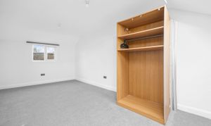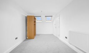 A bright and airy double bedroom (18’8” x 9’5”) with Velux windows and eaves storage, offering a tranquil retreat at the top of the home — perfect for guests or older children.
