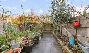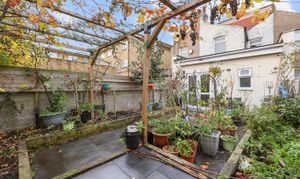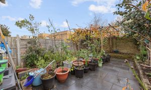 The private rear garden (approx. 22’5” x 16’5”) provides a peaceful outdoor haven. Currently arranged with potted plants and raised beds, it offers great potential for landscaping or creating an al fresco dining zone beneath the existing wooden pergola. With a paved patio and low-maintenance borders, it’s ideal for keen gardeners or families seeking outdoor space with easy upkeep.