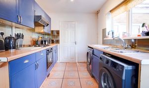 With double glazed window to the side elevation, double glazed door to the side elevation, tiled floor, part tiled walls, wall and base units with work surface over, pantry, sink and drainer, integrated oven and hob, extractor fan, space for fridge, space for washing machine, space for dishwasher, radiator.