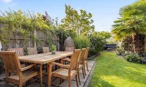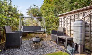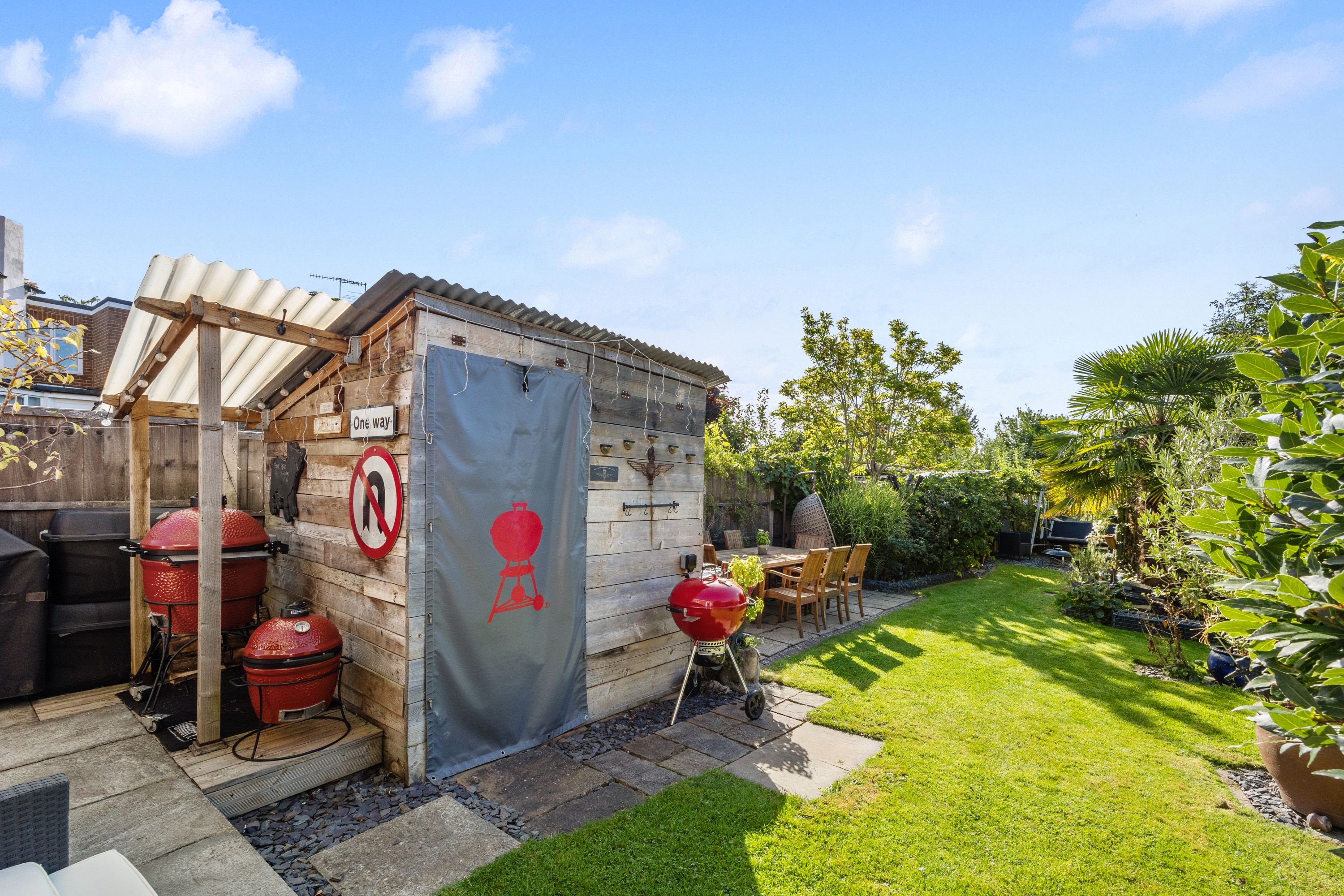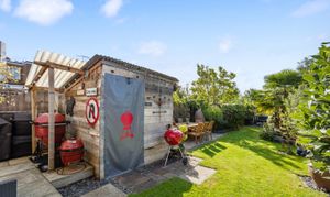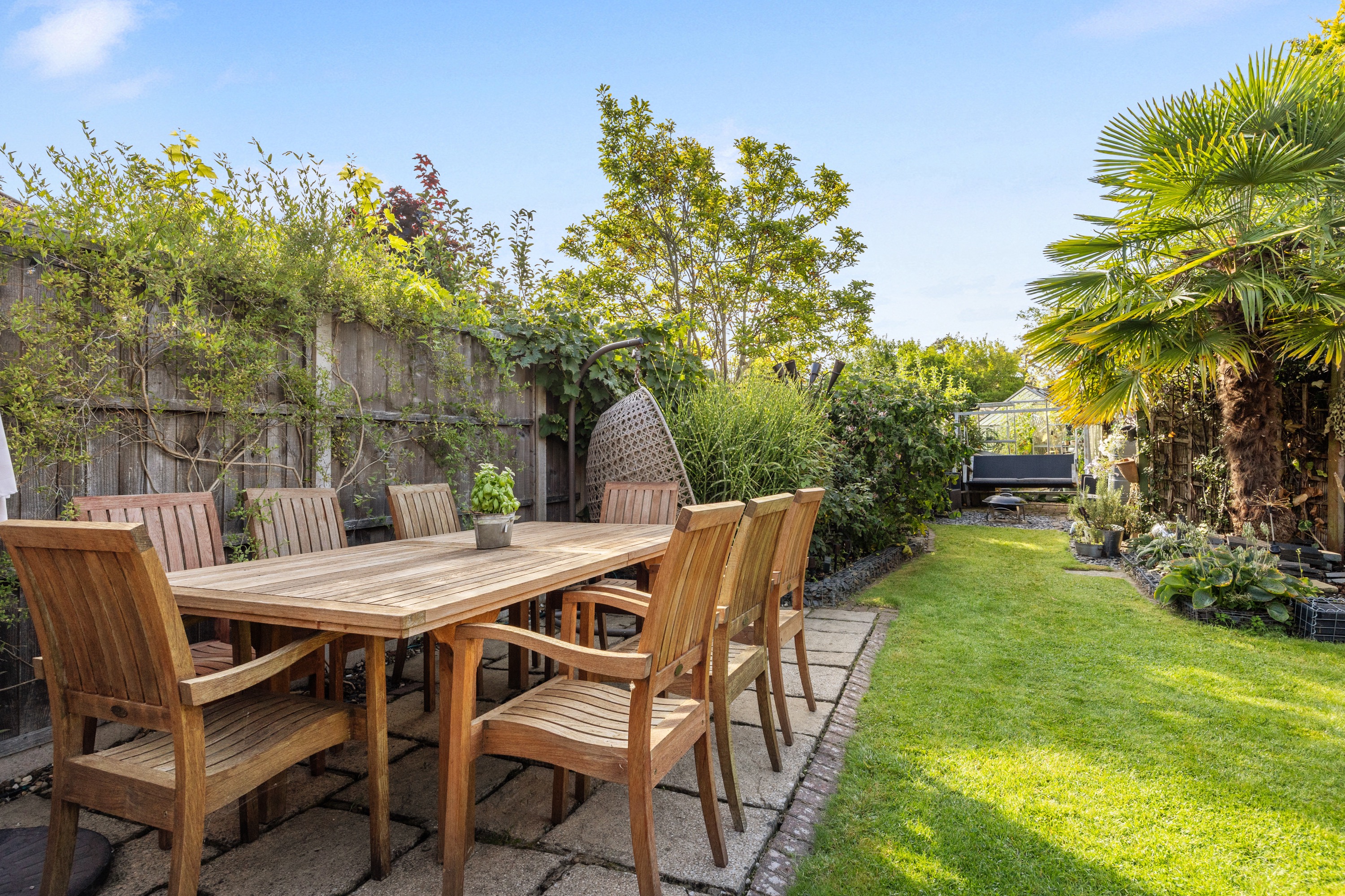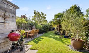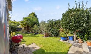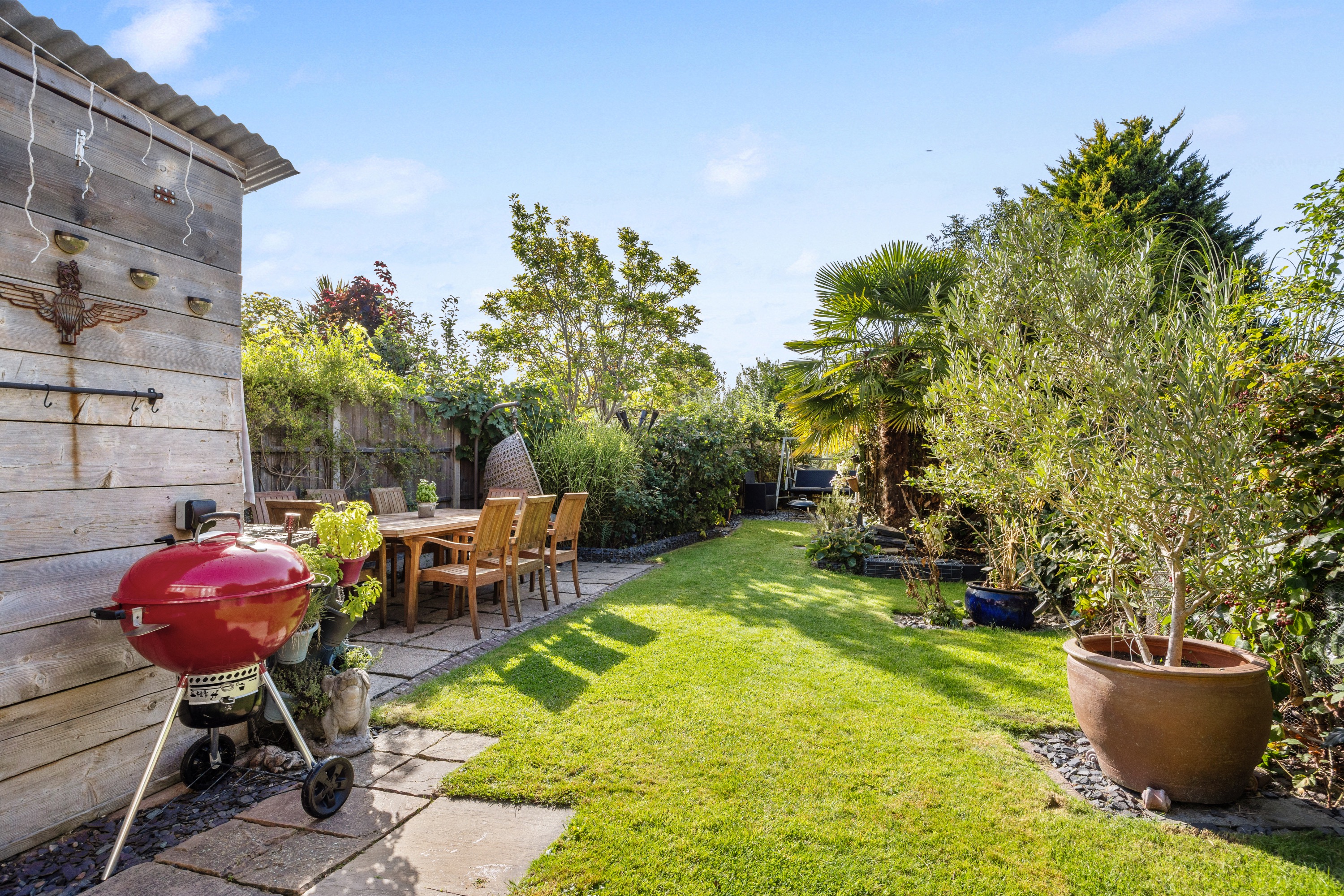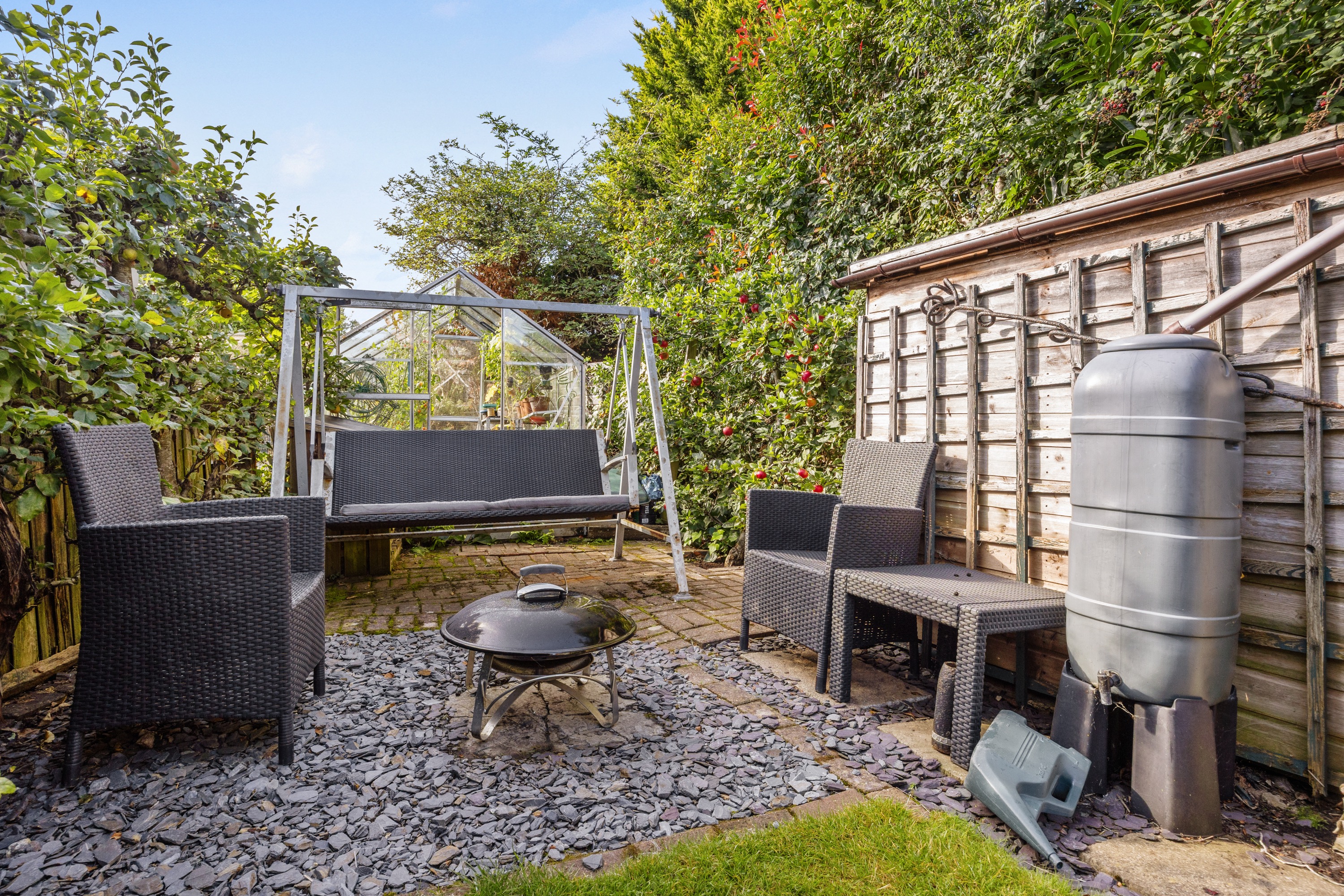 Outside to rear, is a good sized garden. It is mainly laid to lawn with a host of mature fruit trees, grape vines and flower beds. There is also a greenhouse, a slate seating area and a patio abutting the property. Here there is also a wooden barbeque area, side access and door to garage.