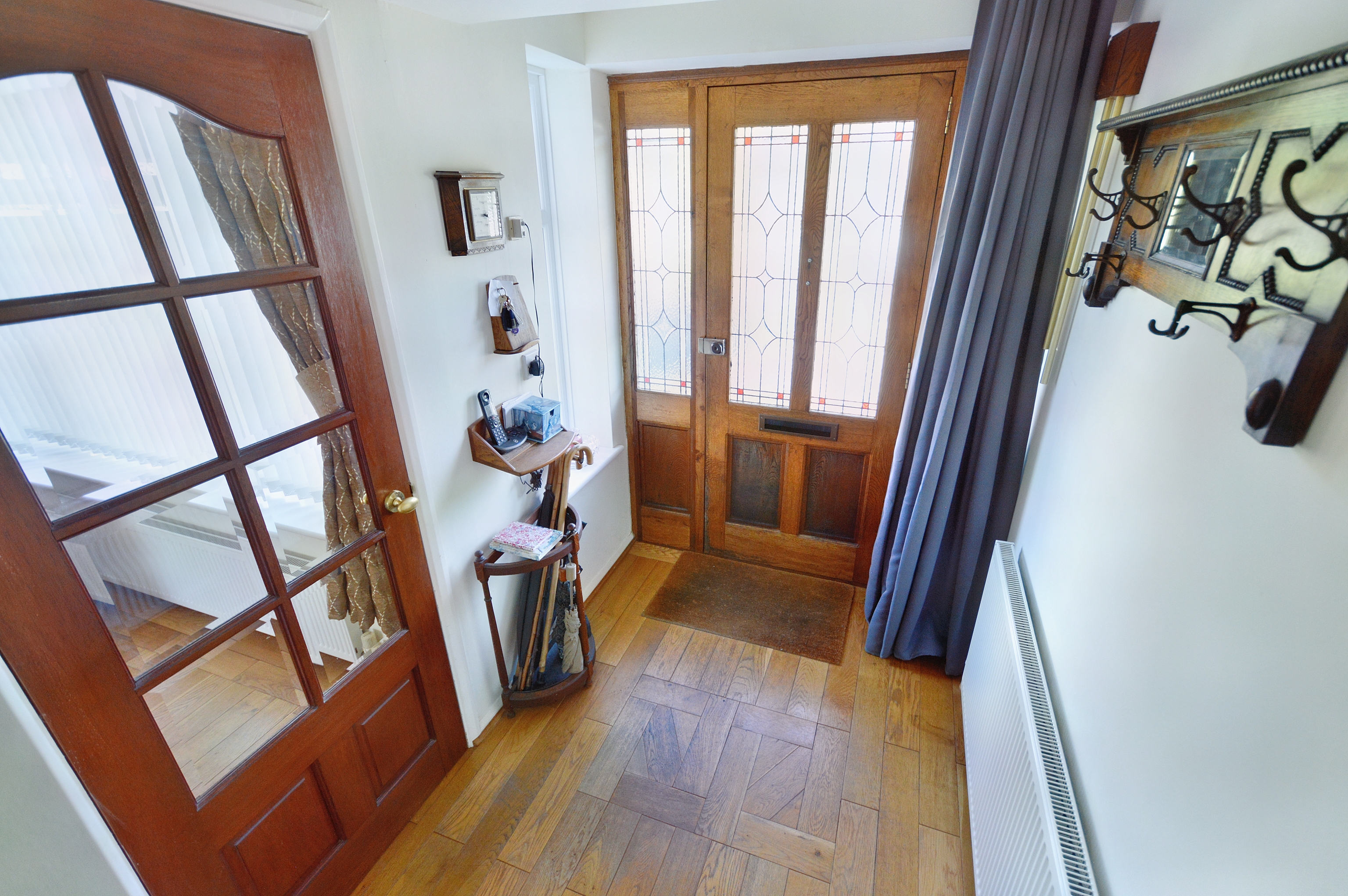 Double glazed lead light entrance door leading to the entrance hall 7'4 x 5'2 stairs leading to first floor, one double radiator, wooden flooring, smooth plastered ceiling and door leading to: