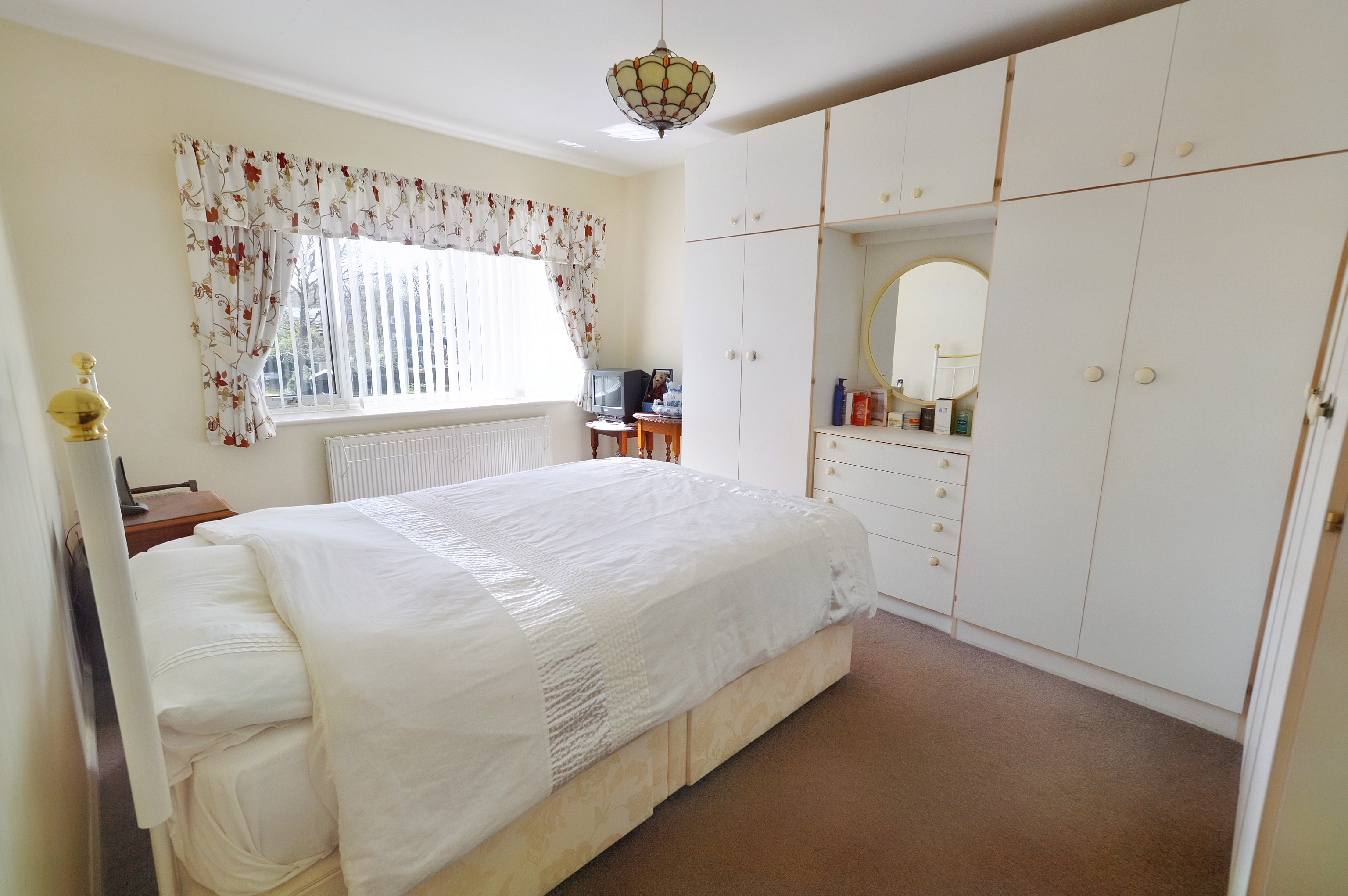 Double glazed window to rear with views overlooking the garden, fitted wardrobe to one wall and dresser unit, one radiator