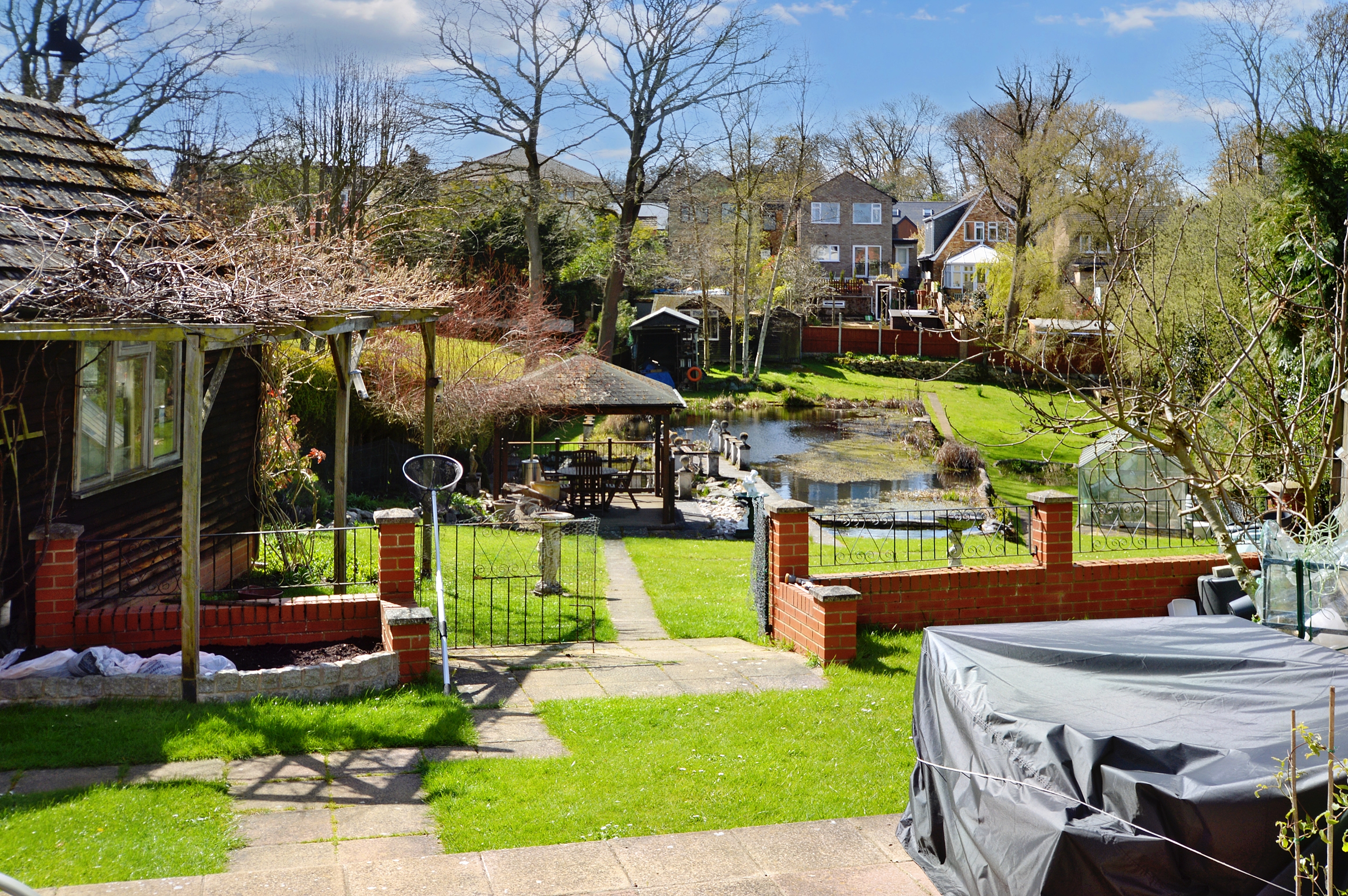 This stunning park like rear garden is South facing and measures approx. 320' in length and is set on different levels. The garden commences with a patio area and to the side has access to the carport and detached garage and a further outbuilding which measures 17’9 x 11’1. Wrought iron gates lead down to the pergola with views overlooking the large pond and the remainder of the garden with its tranquil settings.