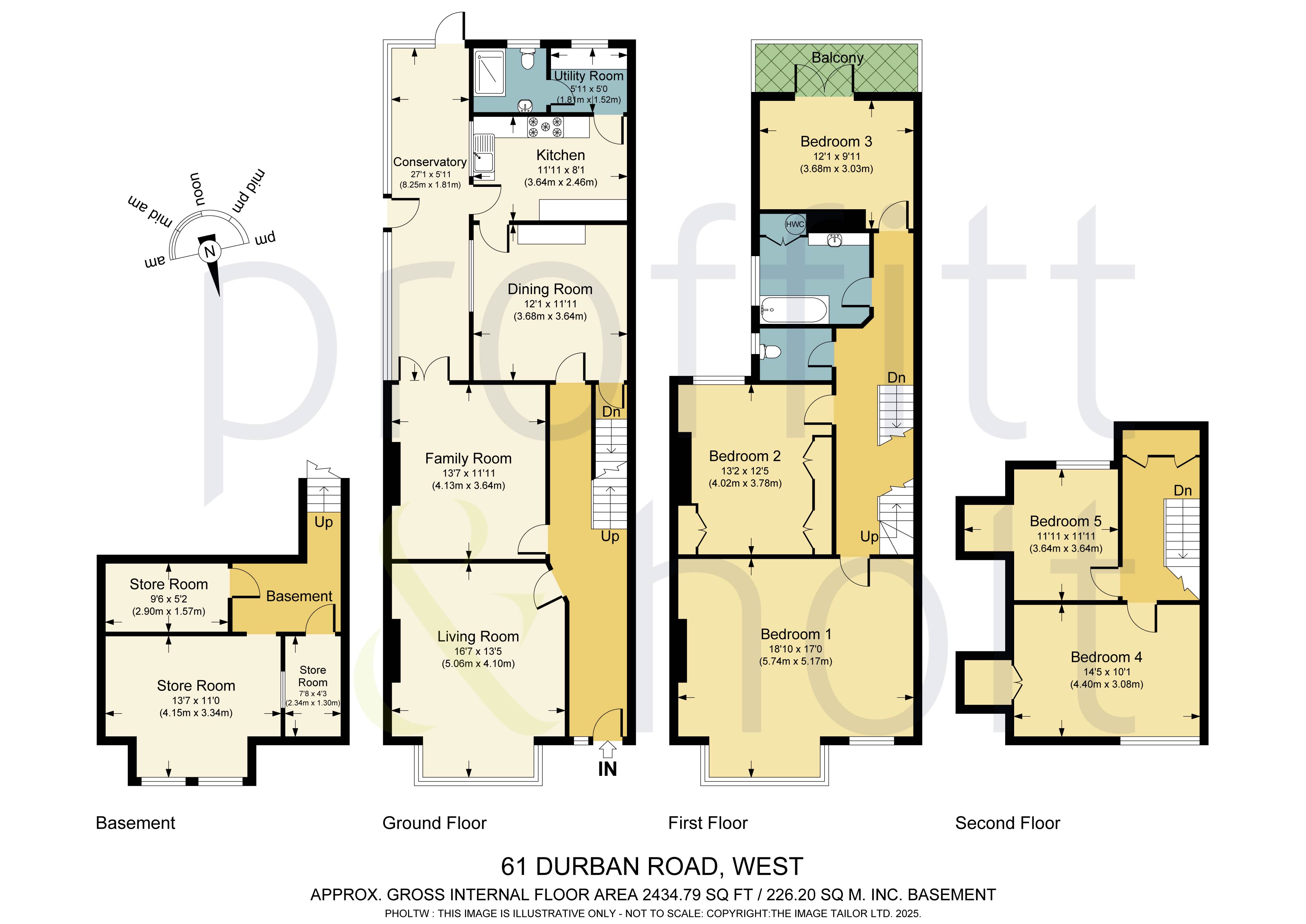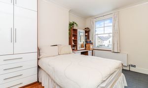 Across the upper floors, you will find five generously sized bedrooms, each offering flexibility for family, guests, or home working. The master bedroom enjoys attractive fitted storage, while the top-floor bedroom presents a quiet retreat with charming views. Two well-appointed bathrooms serve the home, each designed with practicality and comfort in mind.