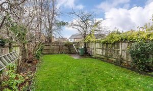The rear garden is wonderfully private, featuring a wide expanse of lawn framed by mature borders—perfect for play, alfresco dining, and outdoor enjoyment throughout the seasons.
