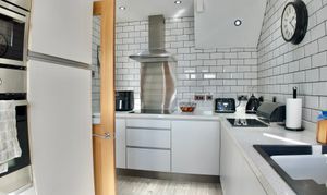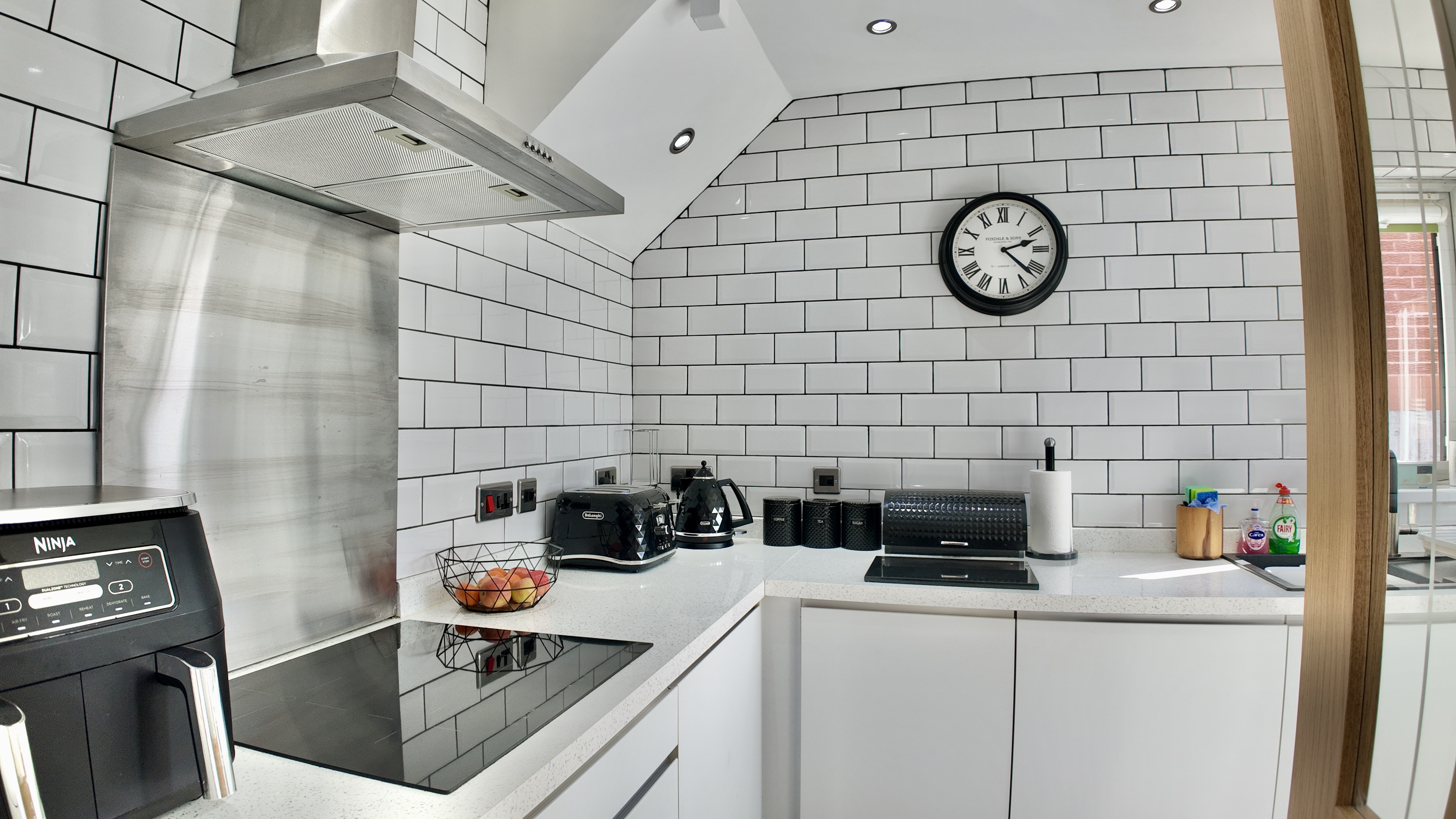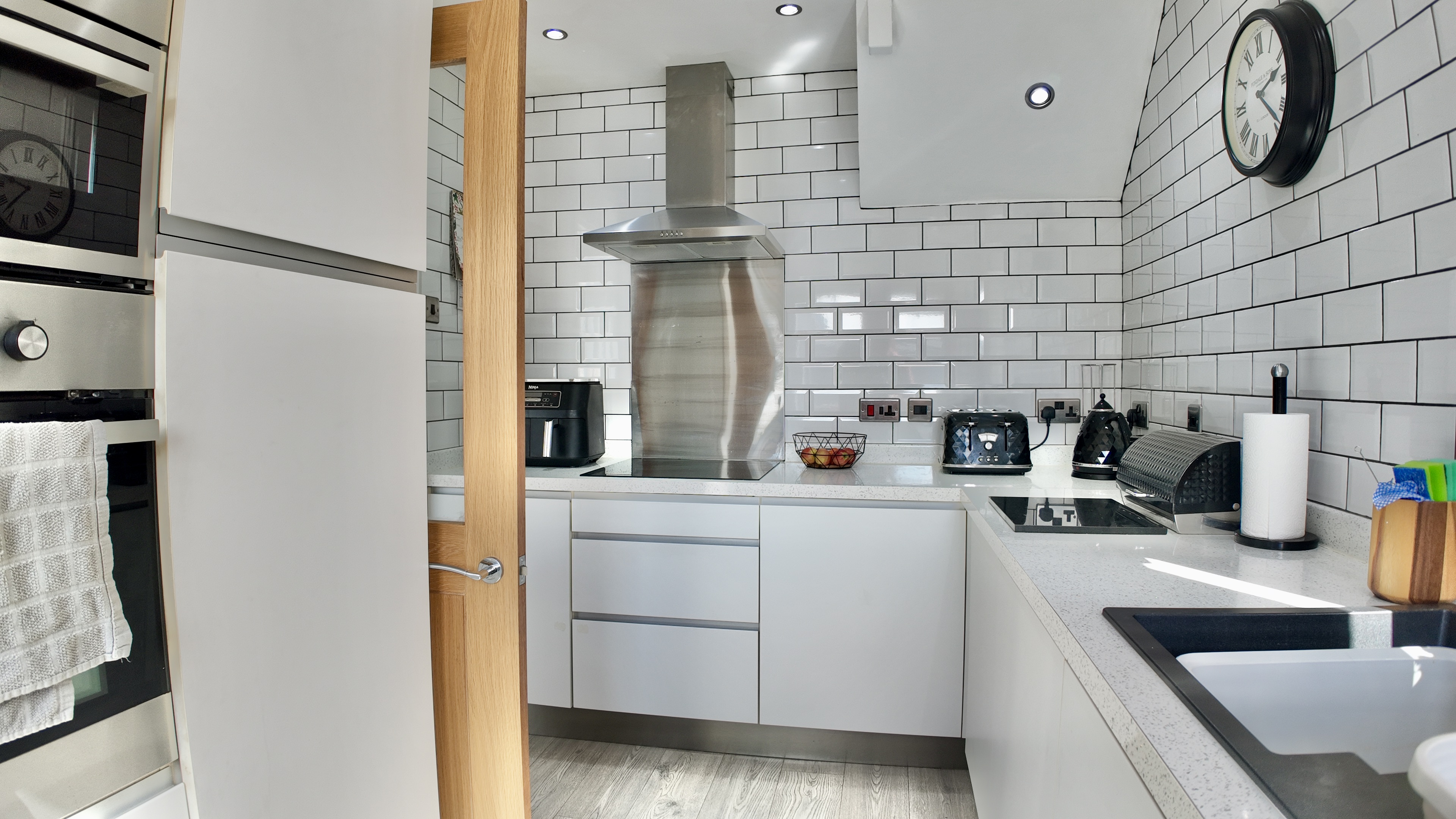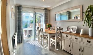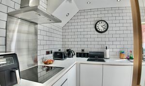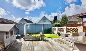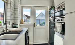 The heart of the home lies in the stylish kitchen, where modern aesthetics meet functionality. Imagine whipping up delicious meals in this gorgeous space that is sure to inspire your inner chef. Overlooking the rear garden, enjoy the view of the lush lawn and decking area, perfect for outdoor relaxation or al fresco dining on warm summer evenings.