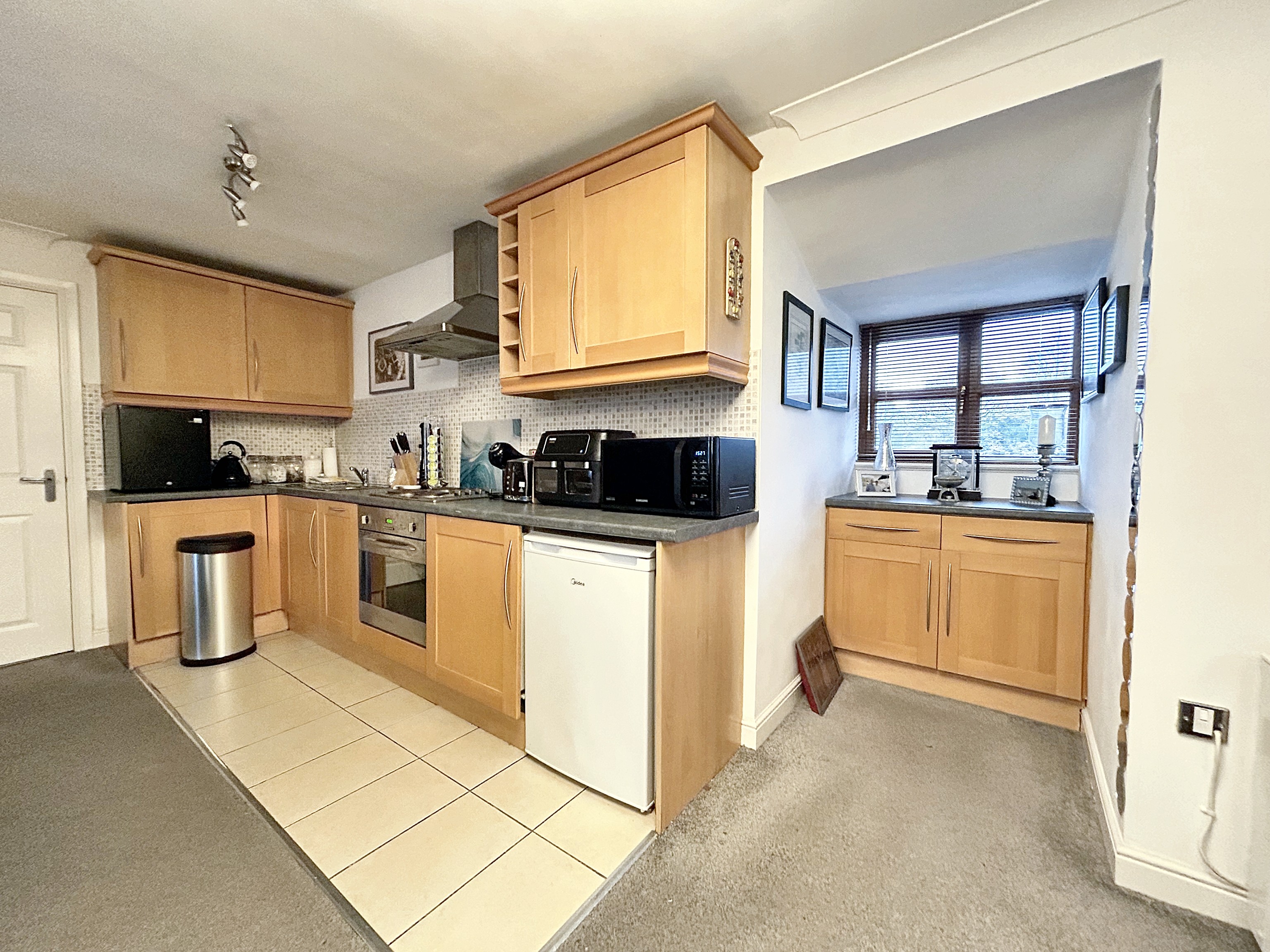 Windows to front and rear elevation. Kitchen fitted with a range of wall and base units complete with integrated oven, fridge and freezer and dishwasher.