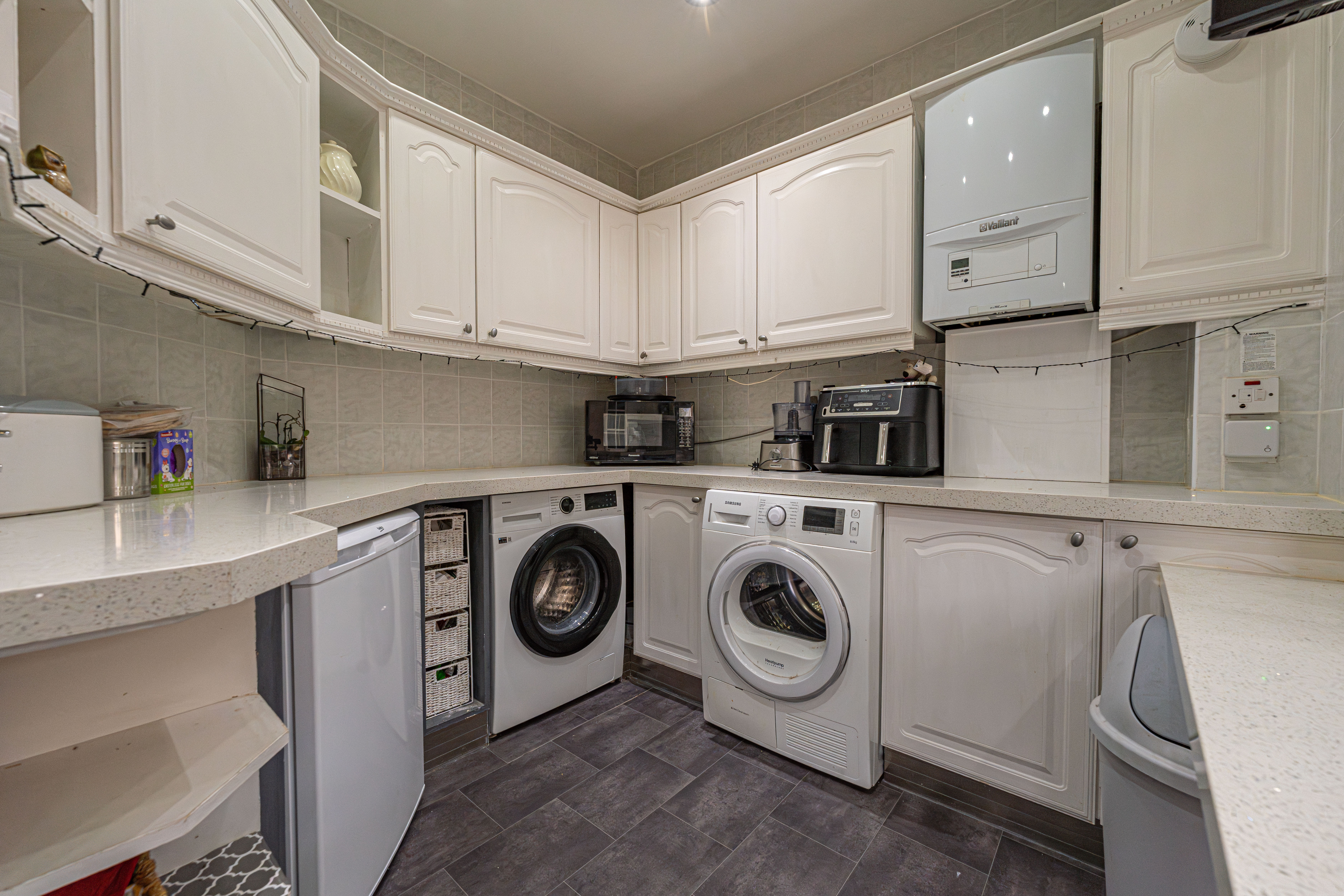Upstairs we have four generously sized double bedrooms bedrooms, with the three having access to fitted wardrobes, whilst the fourth bedroom currently features a home office. The sizeable family bathroom is also found on the first floor, boasting a corner spa bath/shower suite, as well as a separate rainfall shower cubicle.