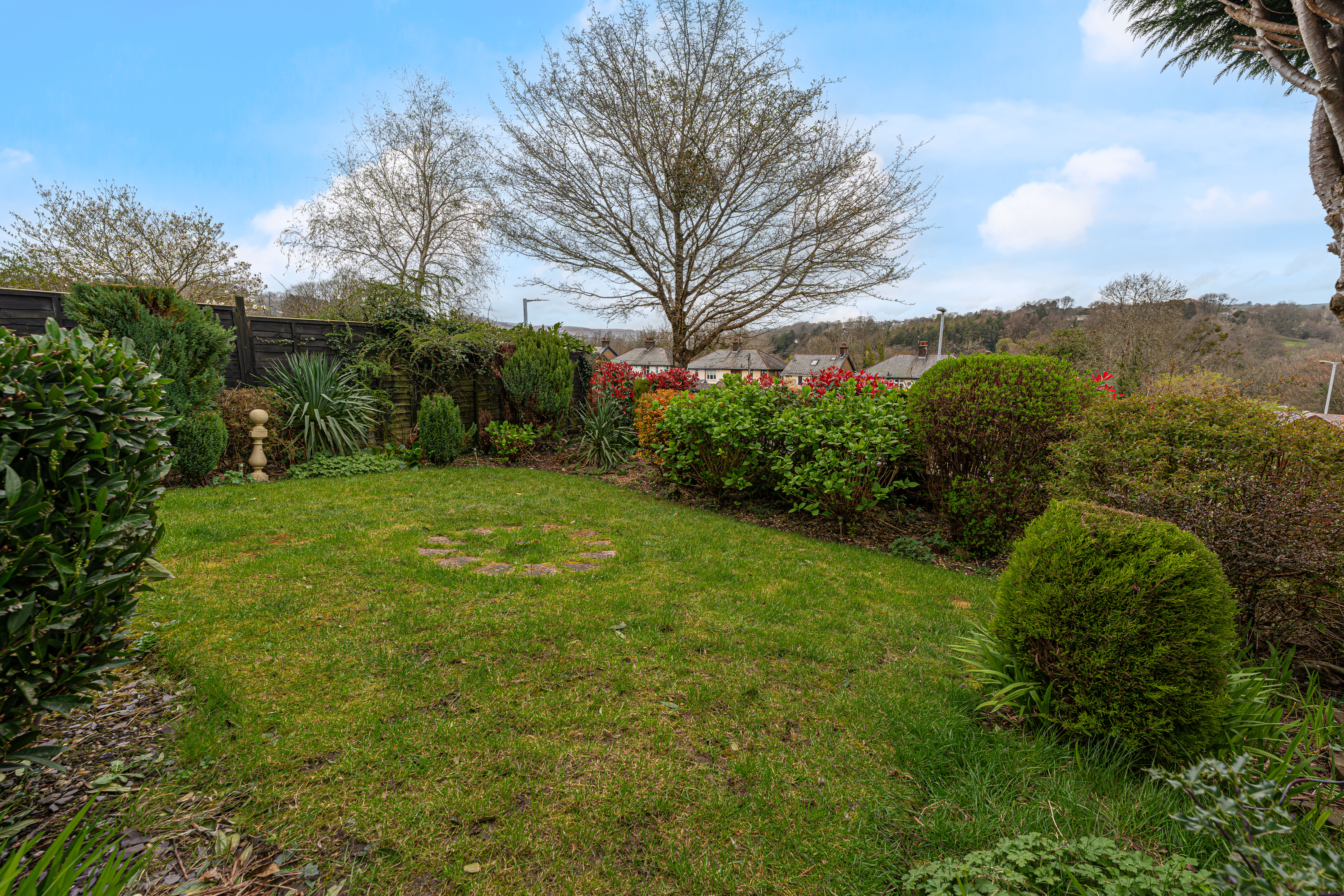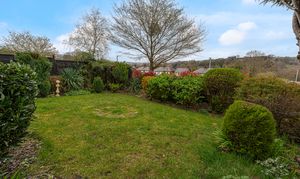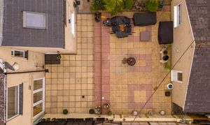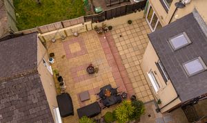 Stepping outside we arrive at the fully enclosed rear garden, featuring an expansive patio space that is low maintenance in design, while offering plenty of outdoor space for lounging in the sunshine, entertaining guests, and dining al-fresco style. Beyond the patio we can find the large double garage that opens out to the lane behind the property, providing sheltered parking for two vehicles, as well as incredible storage and workshop potential, as well as a car pit for vehicle maintenance. The front of the house is equally impressive, with a colourful front garden decorated with a variety of flowers, shrubs, and mature trees, creating another idyllic outdoor retreat, as well as complimenting the properties already stunning kerb appeal.