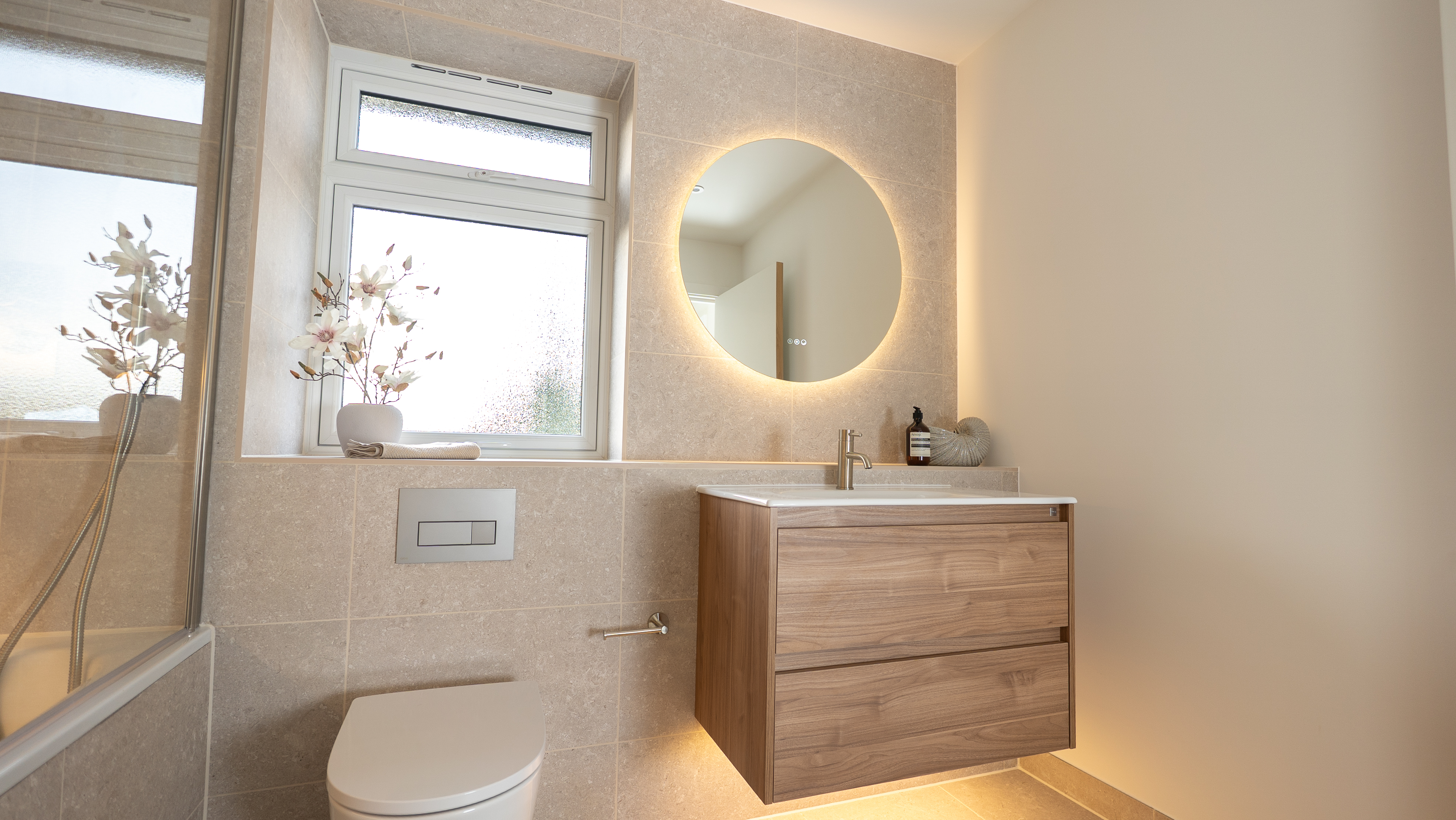 Porcelanosa wall and floor tiling to main bathroom and ensuite