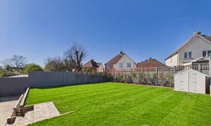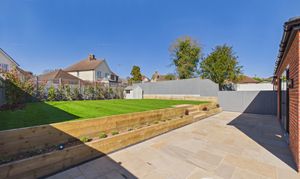The private rear garden measures approximately 50ft x 45ft with a north westerly orientation offers a large patio area for entertaining with steps up to a lush generous lawn, with external lighting, garden tap and side access on both sides.